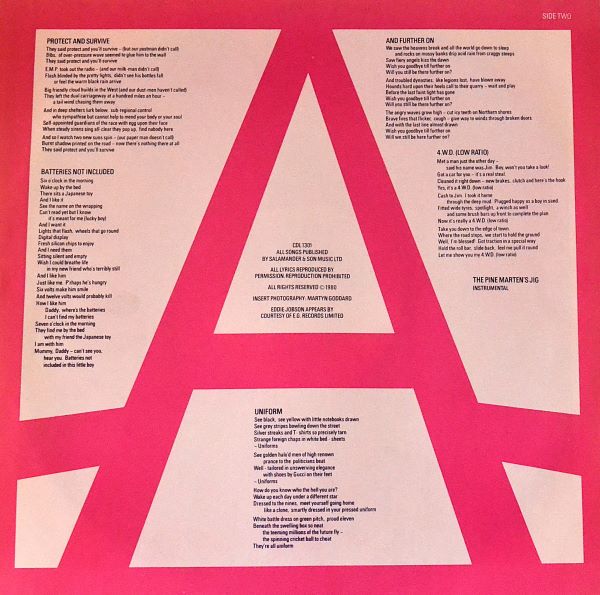 Production is tight and modern for 1980, with punchy drums and prominent keyboards. On vinyl, the dynamics make Black Sunday and The Pine Marten’s Jig especially alive.