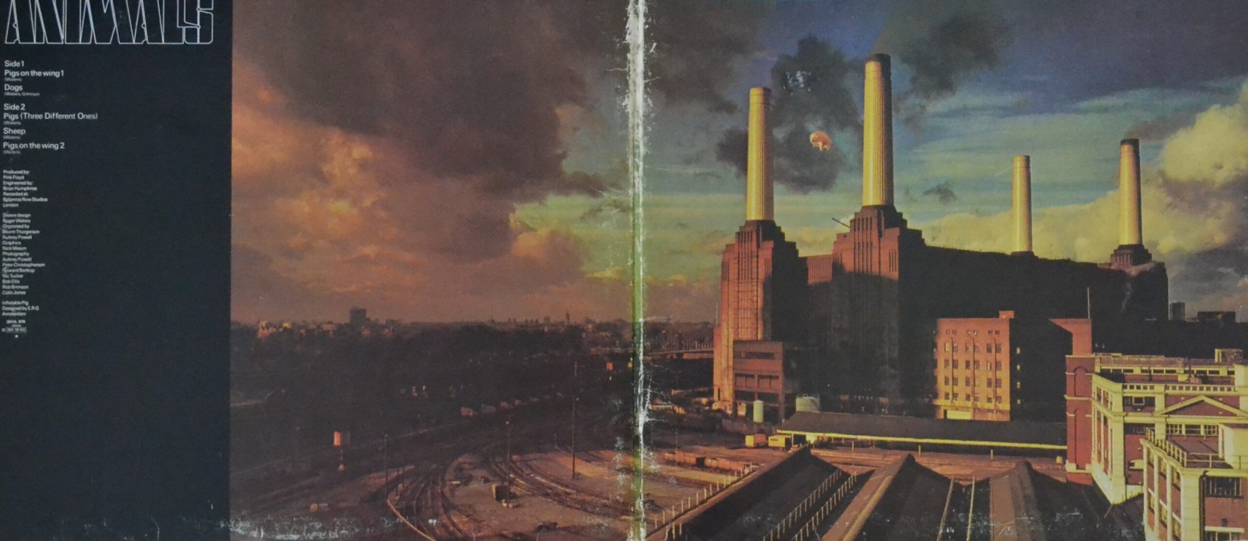 The album cover, designed by Hipgnosis and Roger Waters, features the iconic image of a pig floating between two chimneys of the Battersea Power Station in London. This stark and industrial imagery complements the album’s themes of societal decay and corruption.