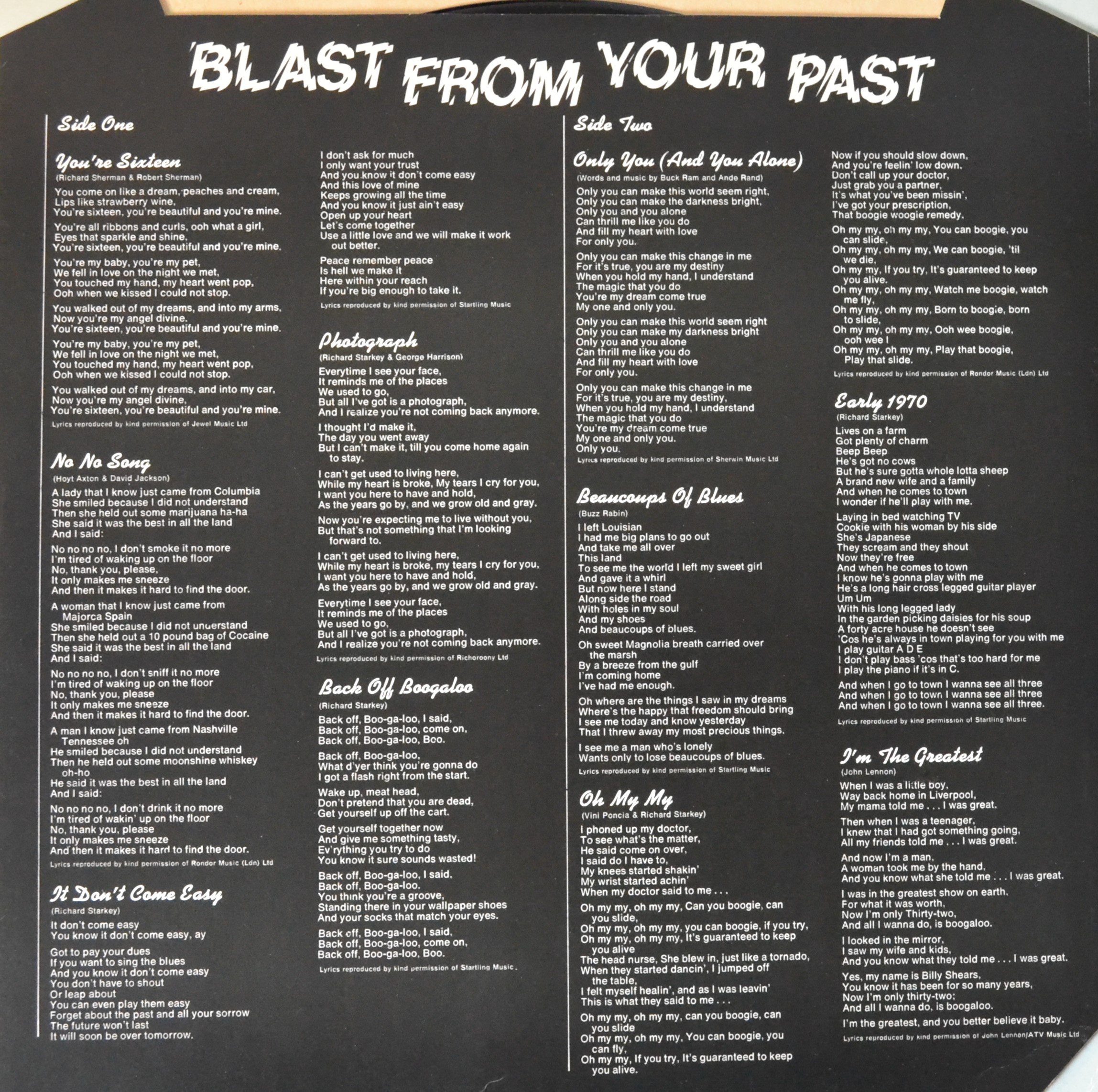 “Blast from Your Past” is a compilation album by Ringo Starr, released in 1975. This collection features some of Ringo’s most memorable hits, capturing the essence of his solo career post-Beatles. It’s a nostalgic journey through the music that defines an era.
