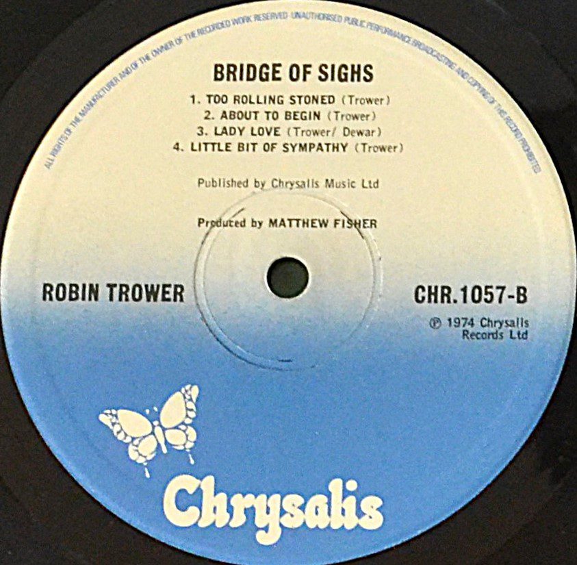 “Bridge of Sighs” is the kind of album that rewards late‑night, front‑to‑back listening. It’s a cornerstone of ’70s guitar rock, a high point in Robin Trower’s catalogue, and a record that still sounds rich and alive on vinyl—especially on this Chrysalis CHR 1057 pressing.
