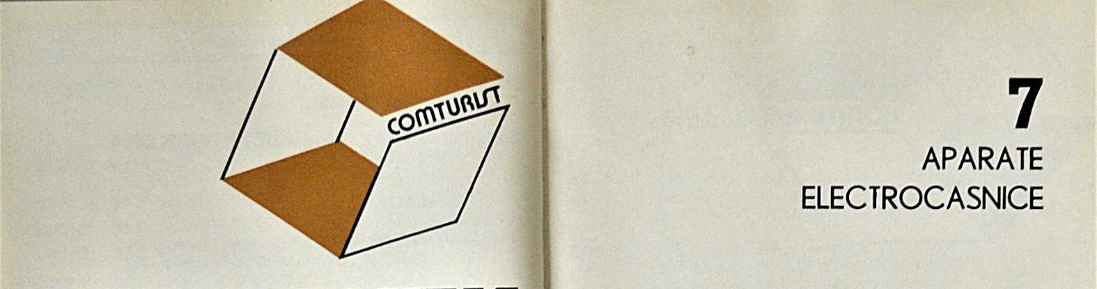 Comturist Catalog 83–84 presents a vintage Romanian shopping guide with a bold geometric cover design and clean typography. Inside, clients are welcomed and directed to COMRED stores, with a structured table of contents covering foods, cosmetics, tobacco, electronics, watches, sports, crafts, furniture, cars, and construction materials, plus ordering instructions for customers.