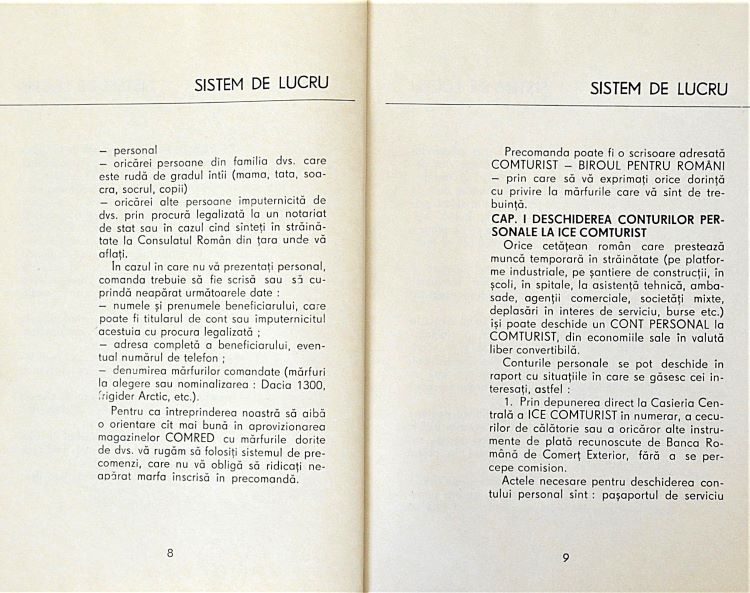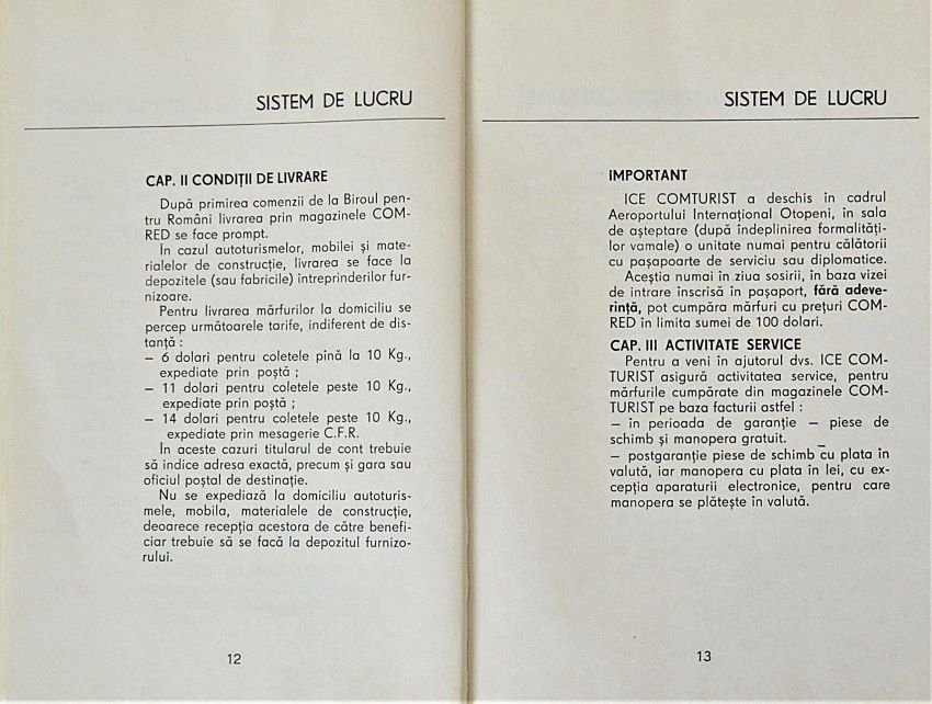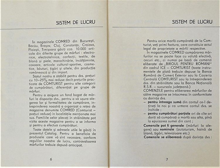 Several spreads titled “SISTEM DE LUCRU” read like a workflow document: who can buy, how orders are placed, how deliveries happen, and where service units are. That’s a reminder: strong catalogs don’t just sell—they instruct.