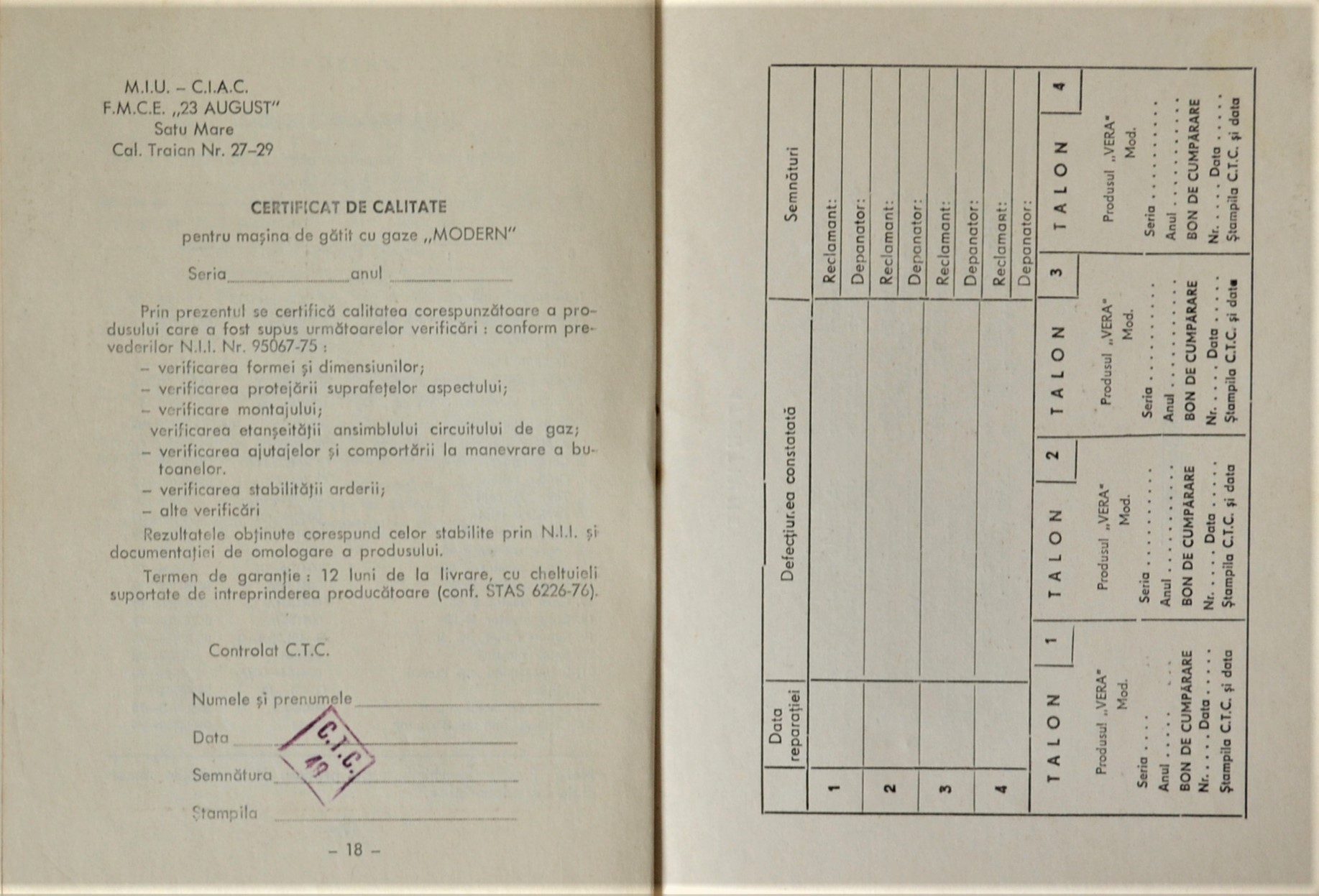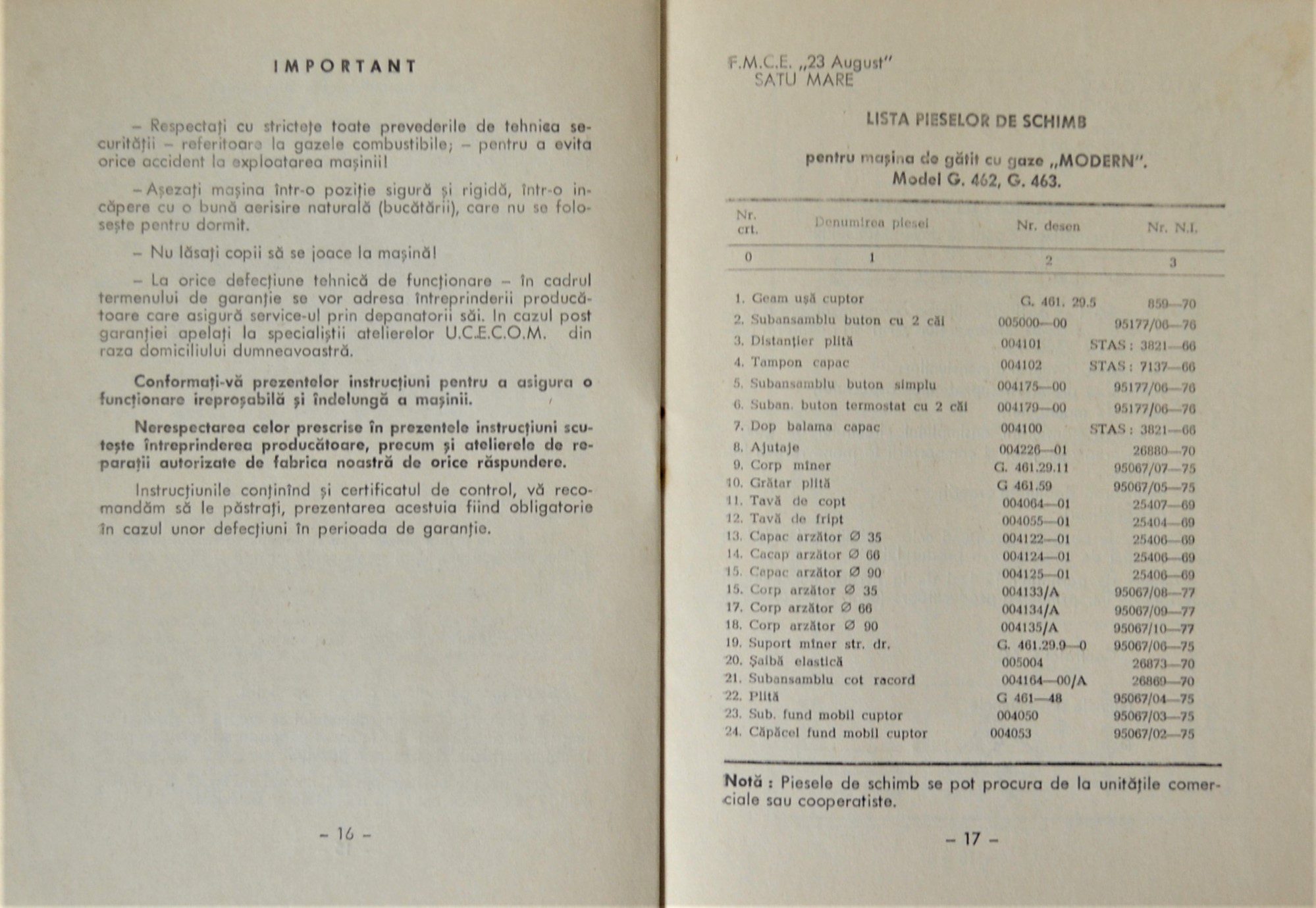 Cooker with Gas “Modern”. Instructions for using. Advert from the 80’s. Company 23 August Satu-Mare.