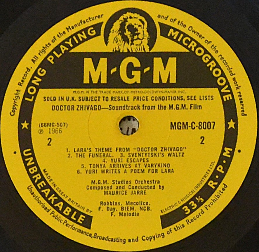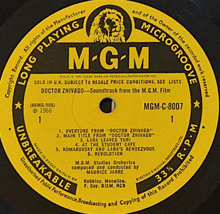 Pressed by E.M.I. Records and The Gramophone Co. Ltd., this MGM Studio Orchestra vinyl showcases Maurice Jarre’s sweeping score, conducted and composed by him, arranged by Leo Arnaud with Lou Raderman, Monique Rollin, produced by Jesse Kay, engineered by Thorne Nogar, Val Valentin, and packaged by Garrod & Lofthouse Ltd.