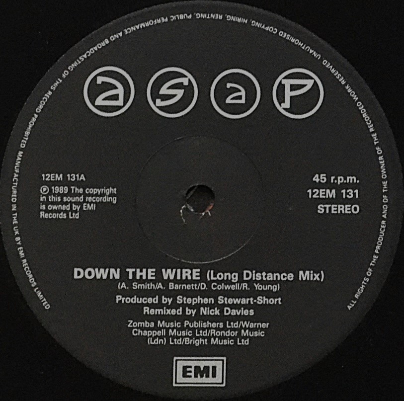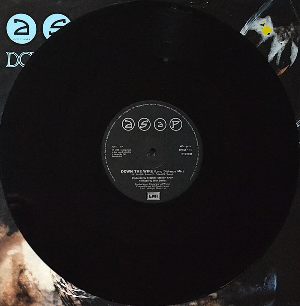Looking for a bona fide 1990 rock anthem on wax? “Down the Wire” by A.S.A.P. (EMI 12EMP 131) is a punchy 12″ that captures that blink-and-you-miss-it moment when radio rock still loved big hooks, but labels were already flirting hard with remix culture. It’s melodic, loud, and built for replay.