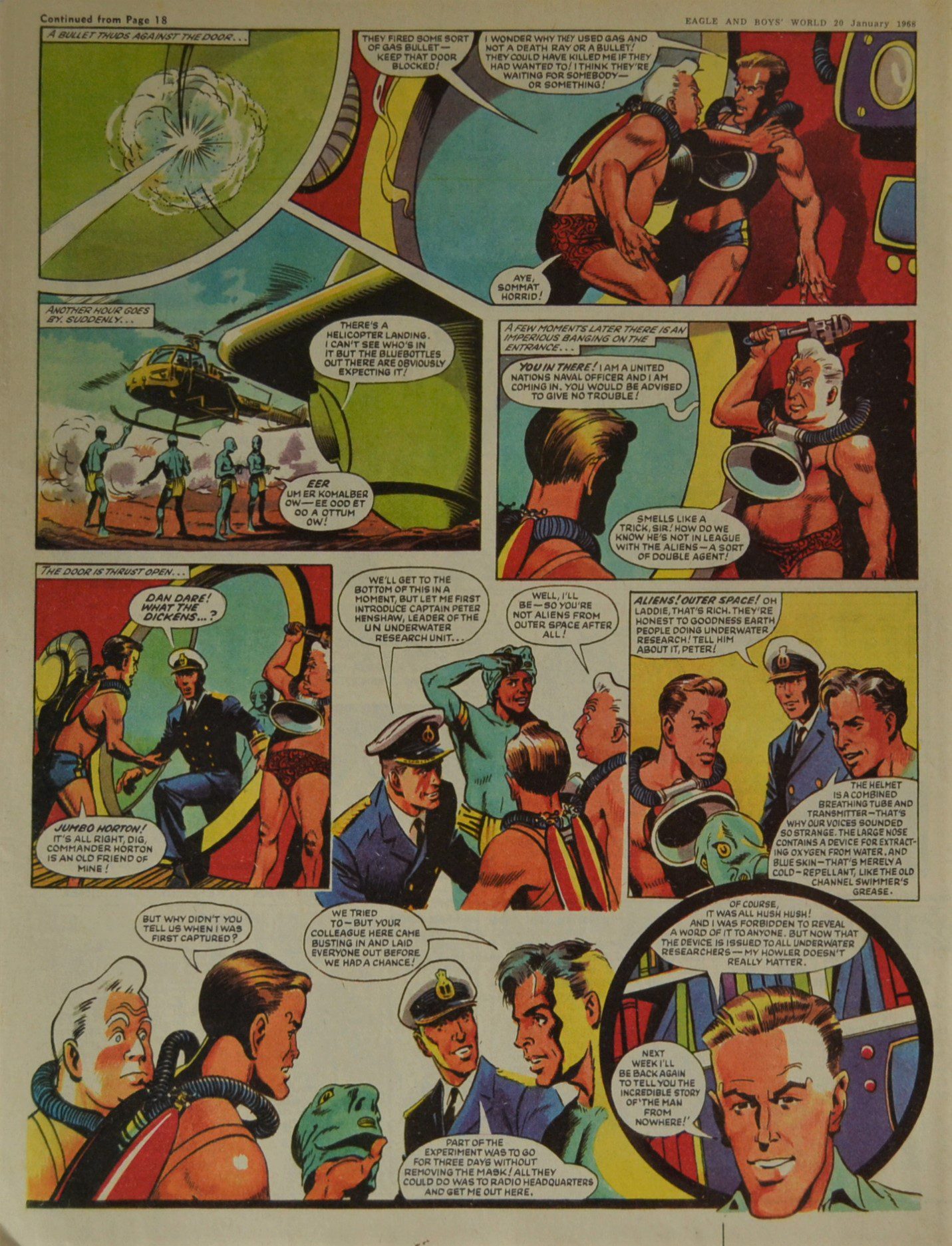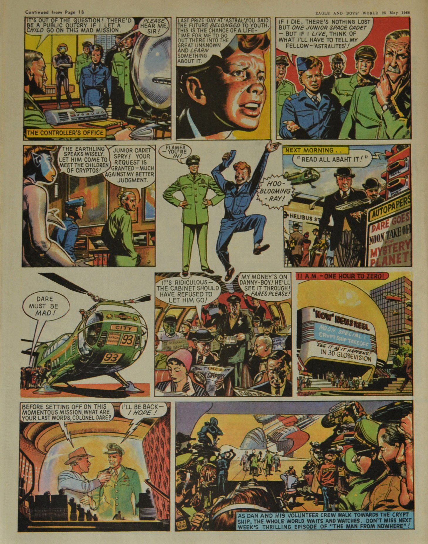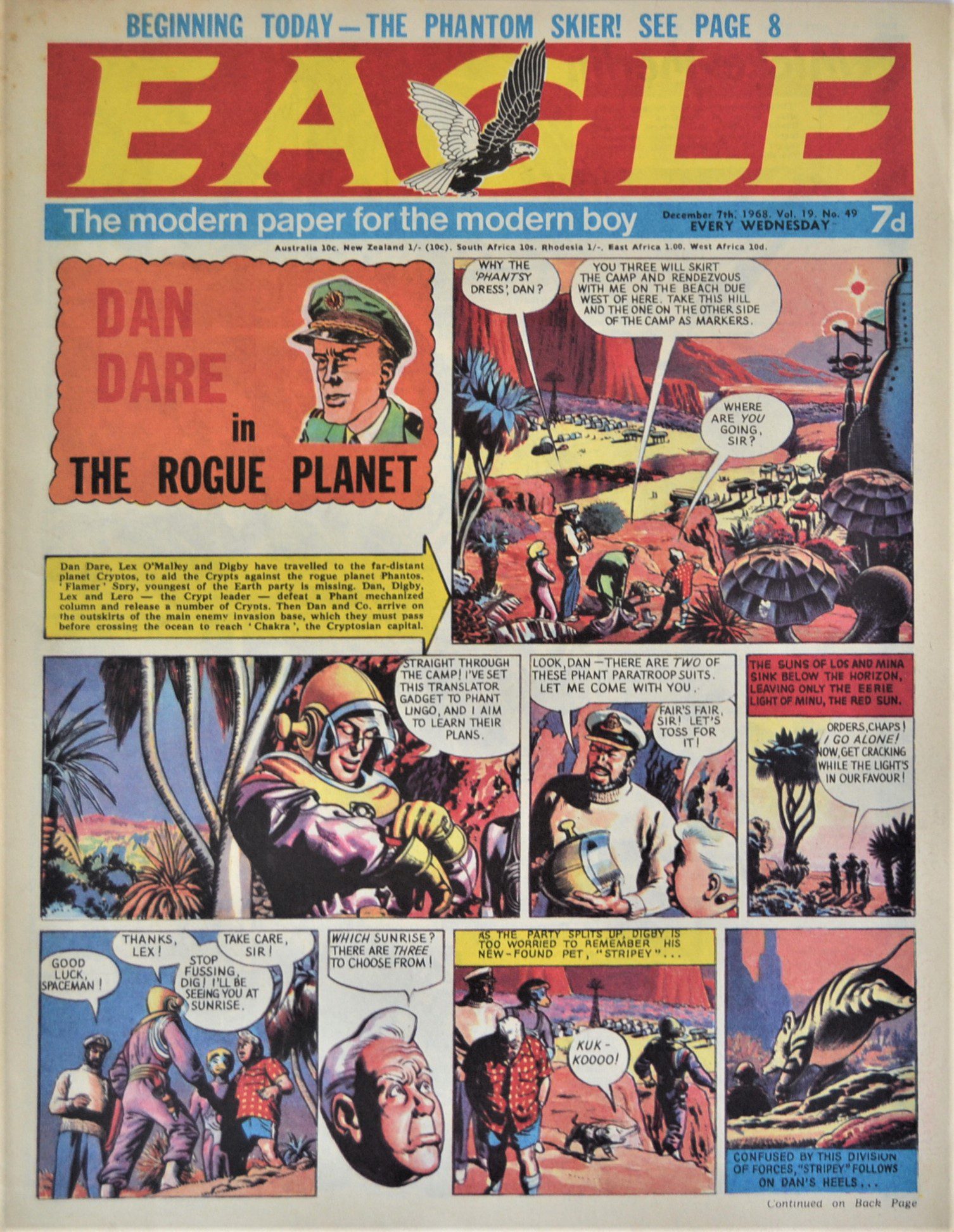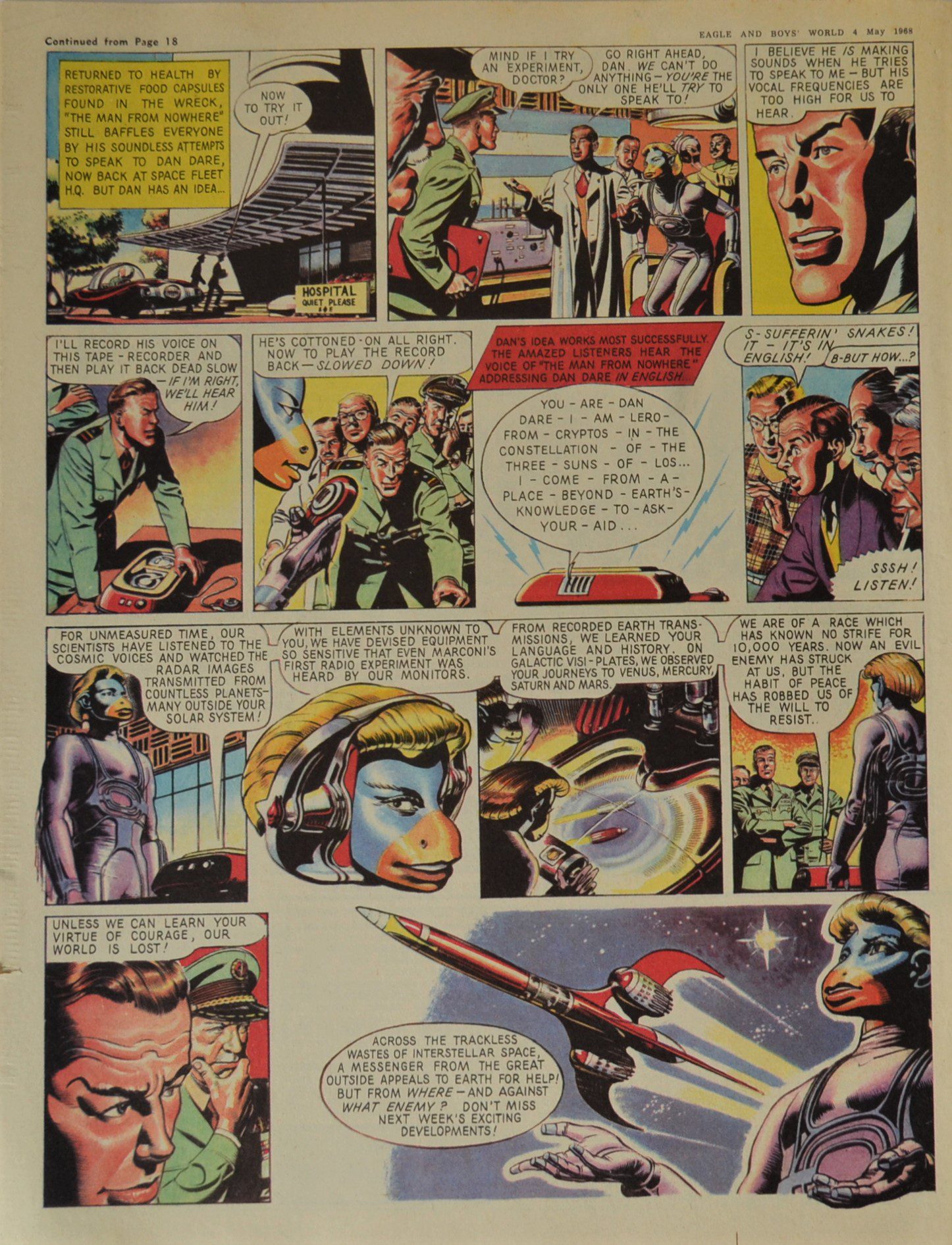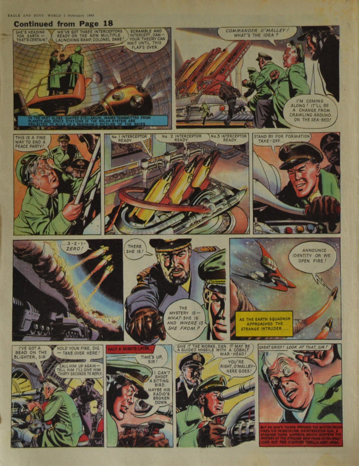 3 February 1968. Dan Dare in The Man from Nowhere, Frontiers of science – This week: Isotopes.  24 pages.