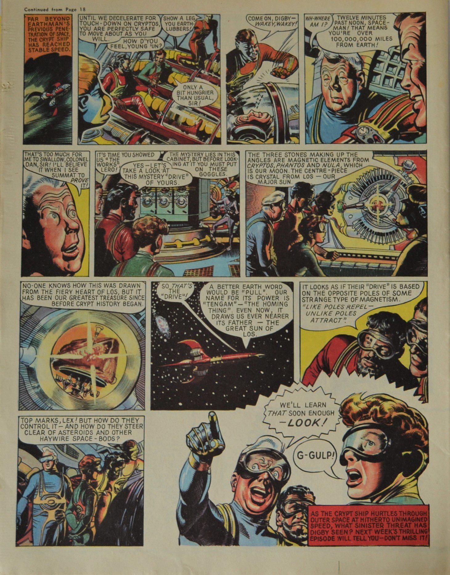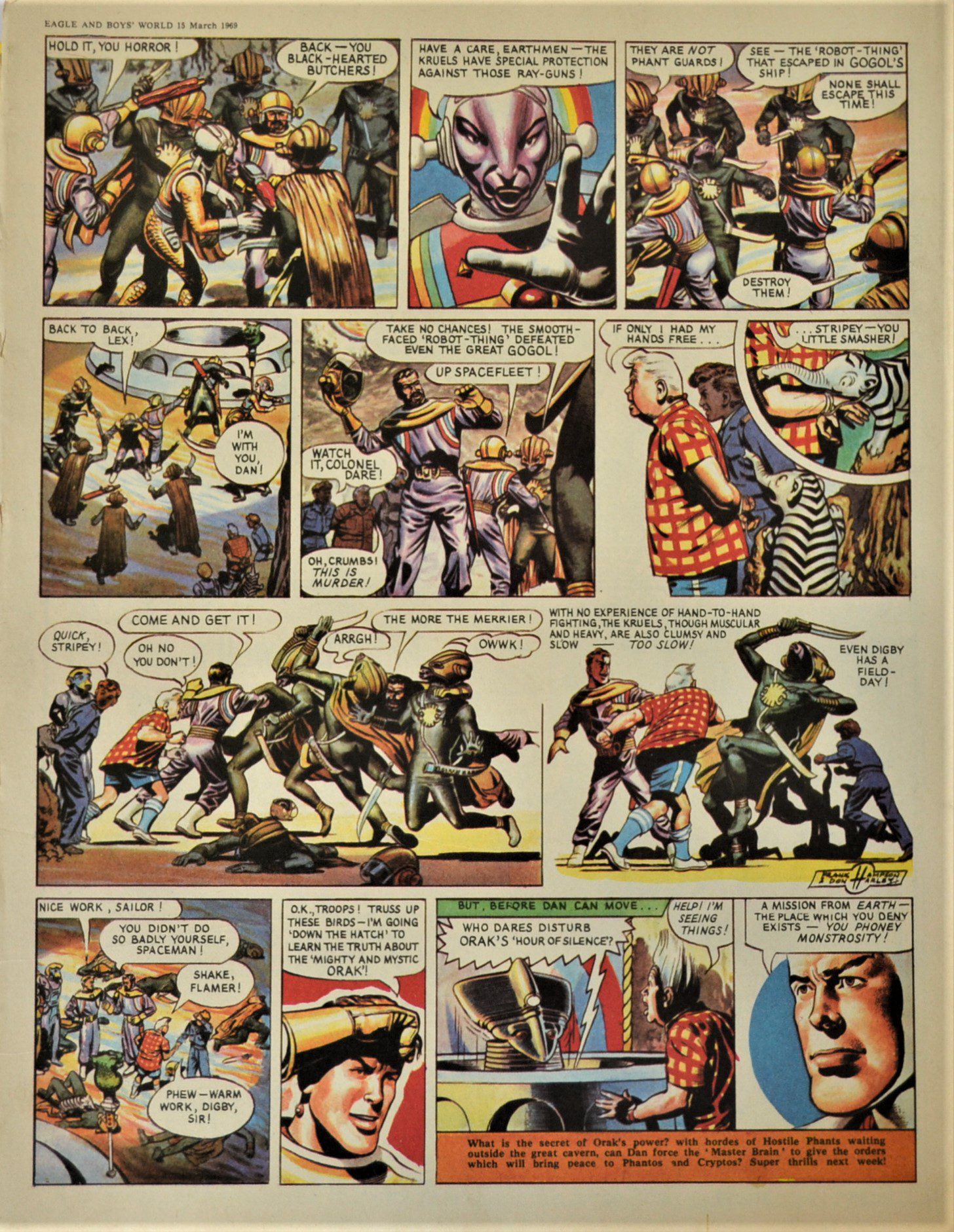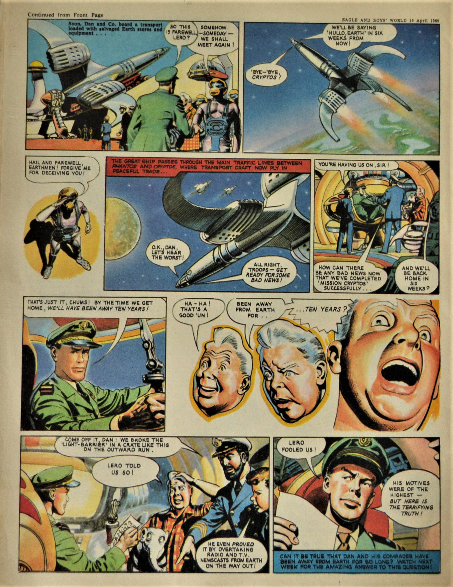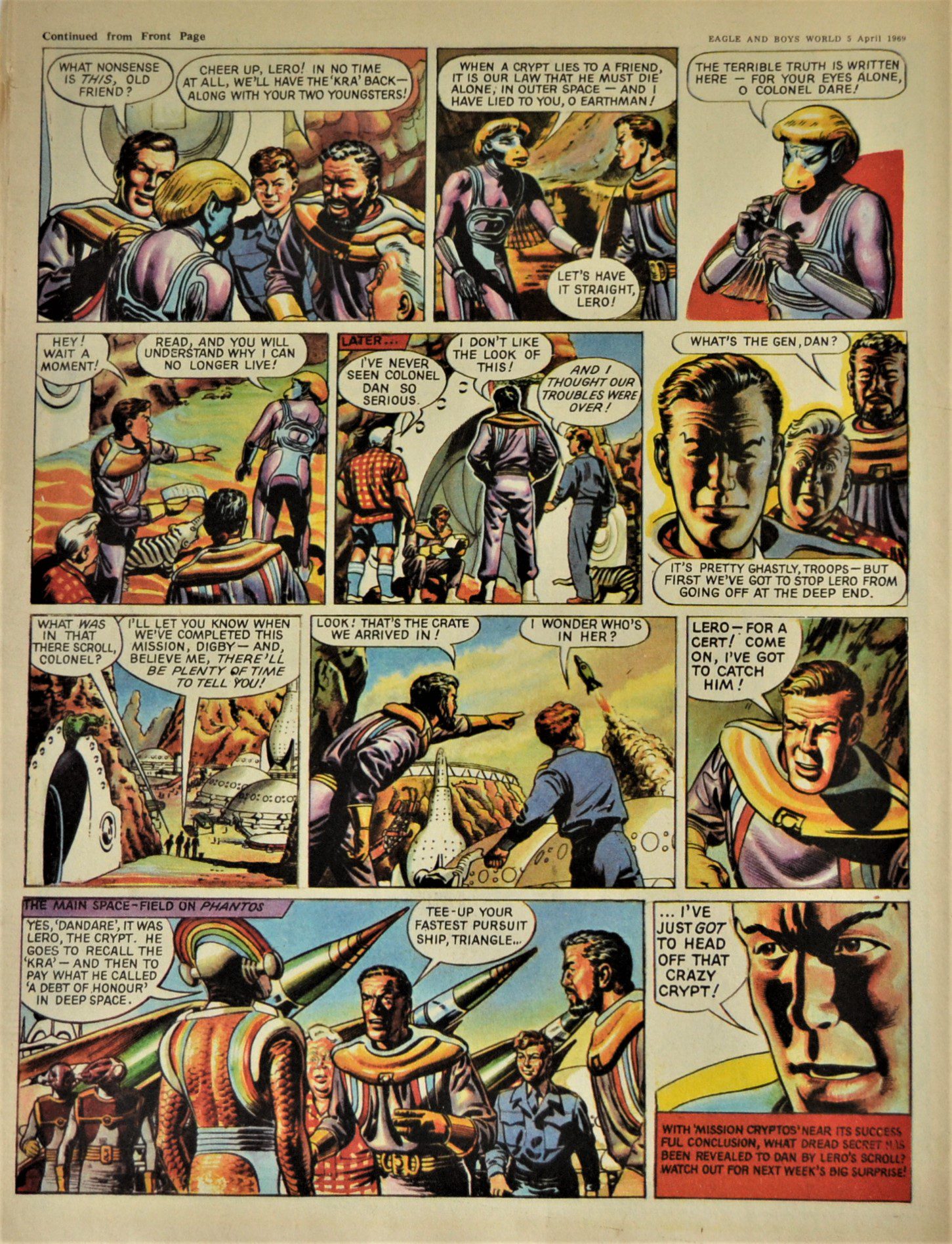 3 February 1968. Dan Dare in The Man from Nowhere, Frontiers of science – This week: Isotopes.  24 pages.