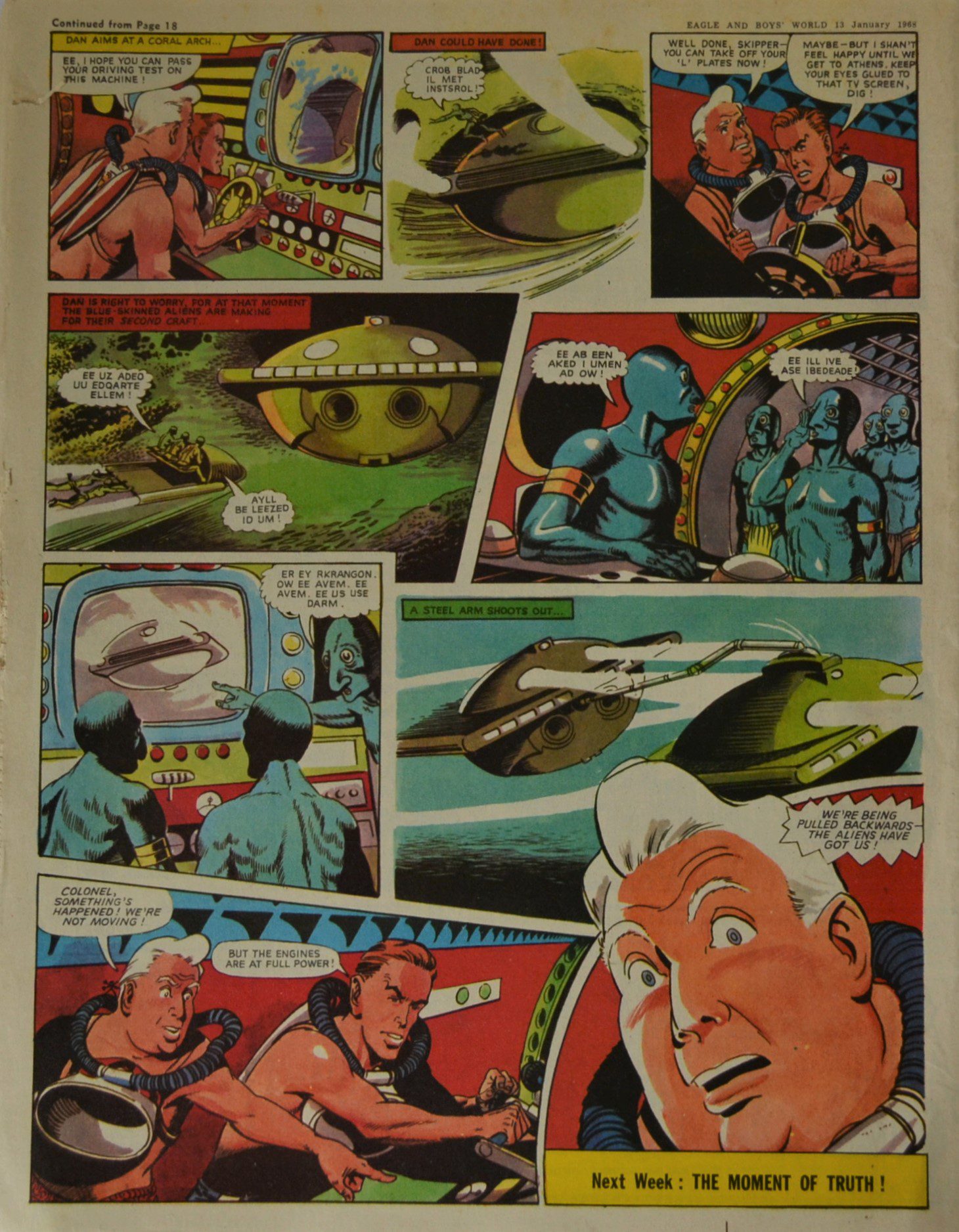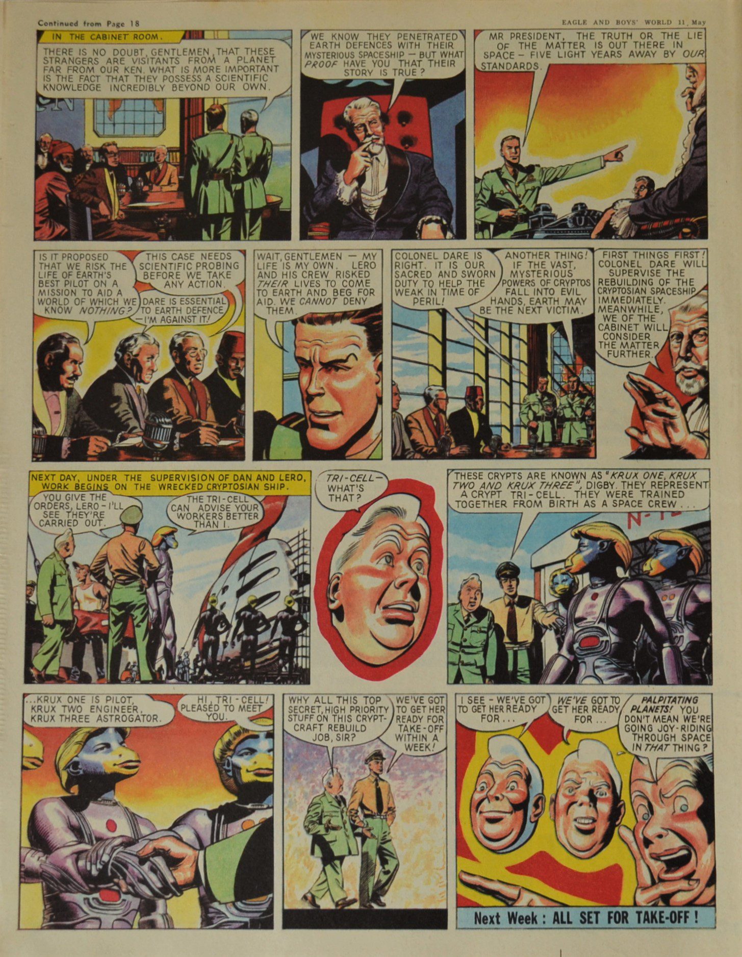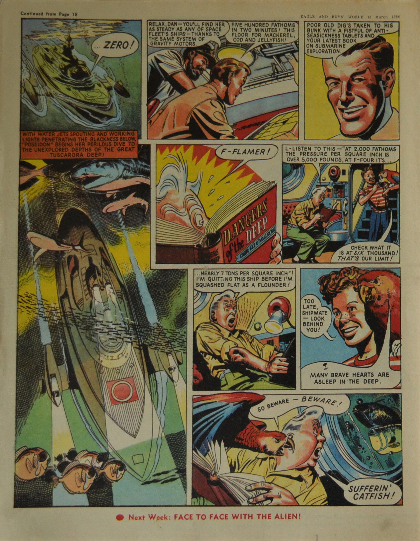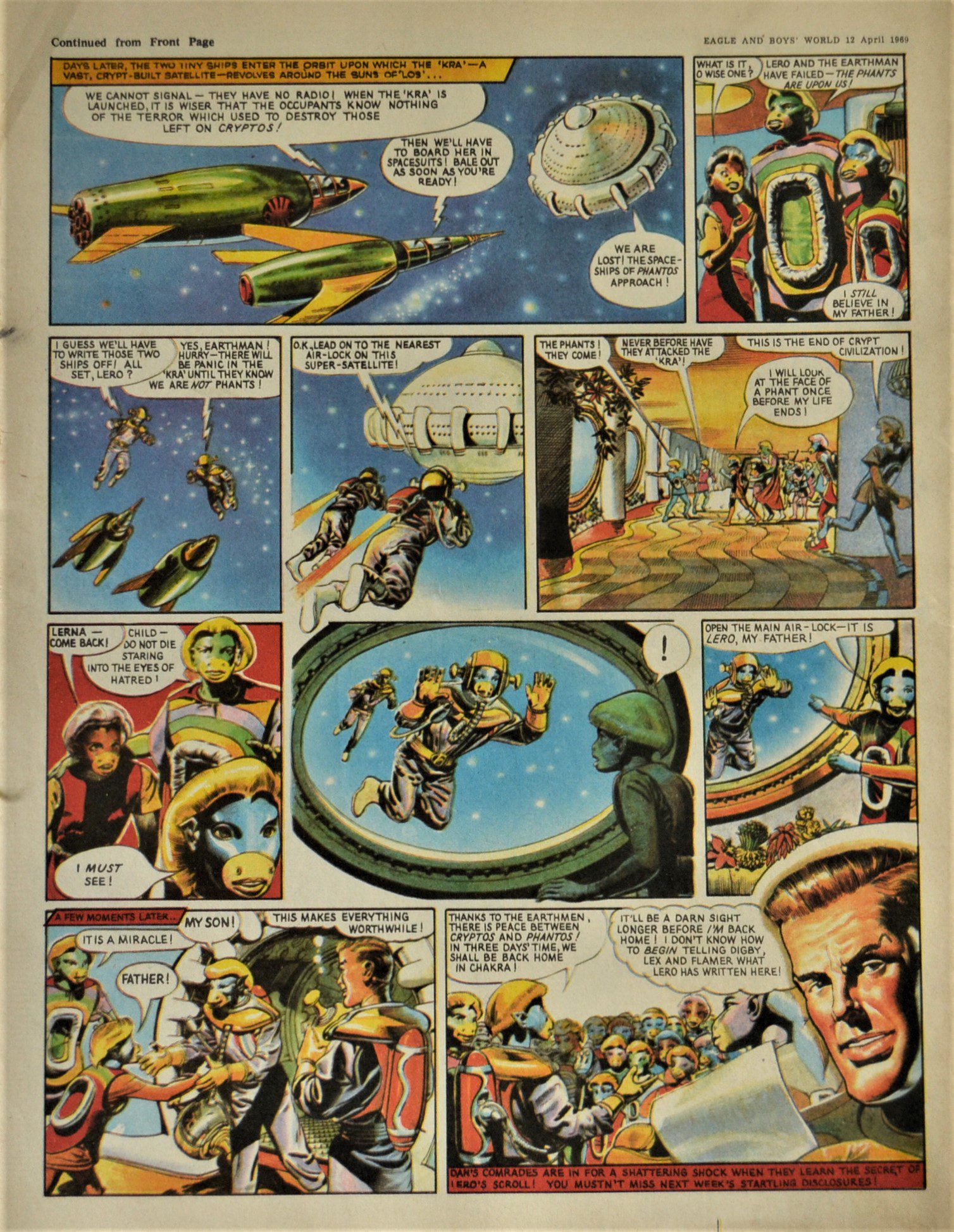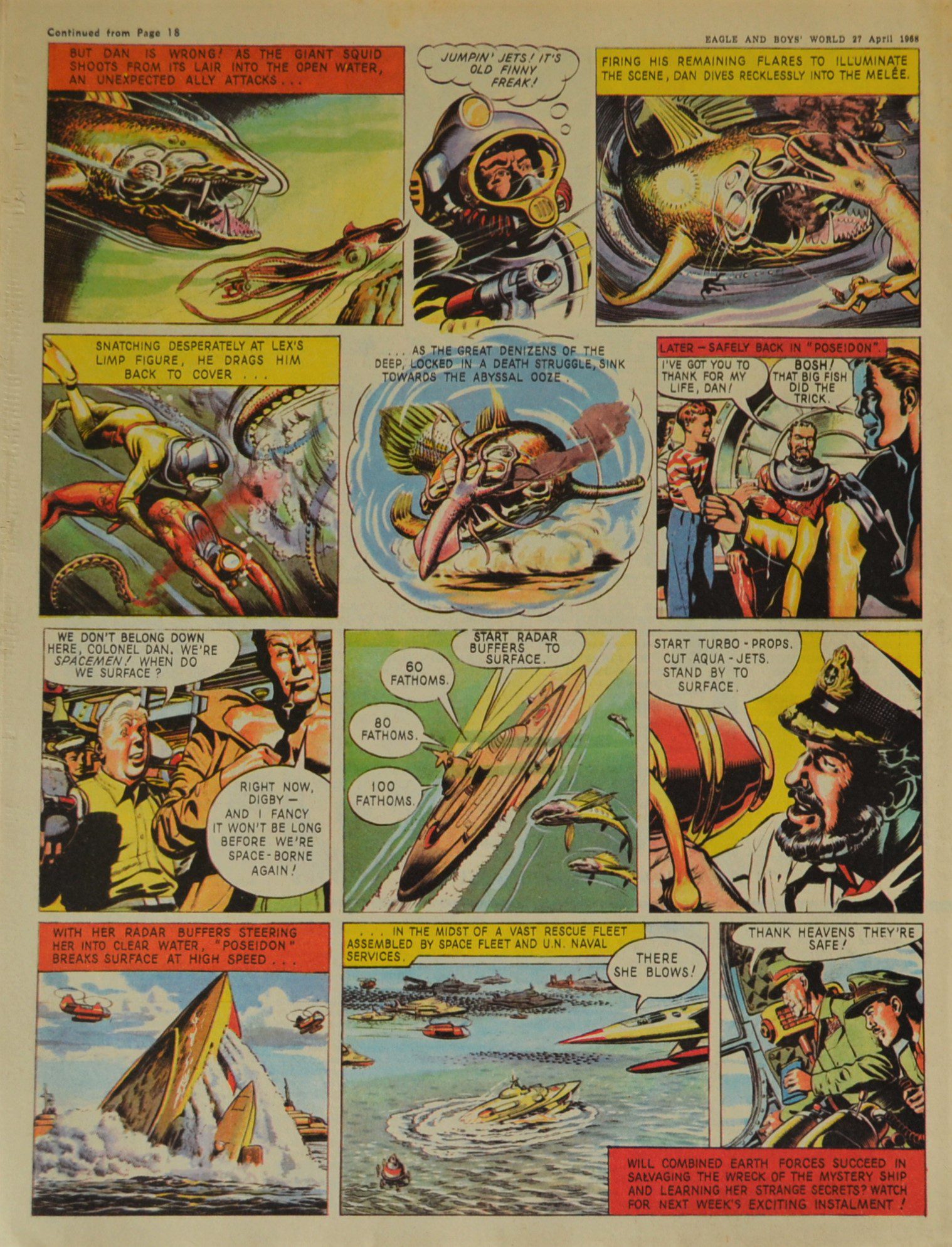 3 February 1968. Dan Dare in The Man from Nowhere, Frontiers of science – This week: Isotopes.  24 pages.