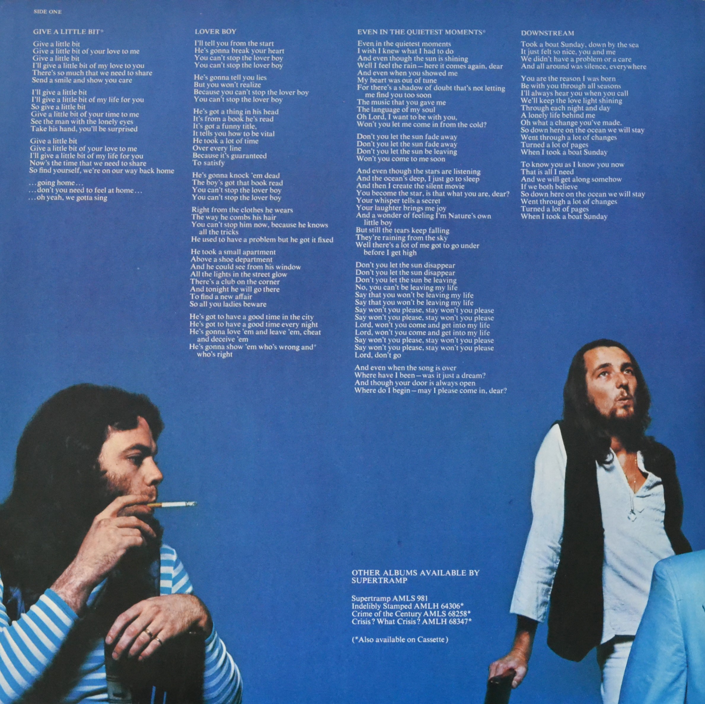 “Even in the Quietest Moments…” invites you to listen beyond the surface—there’s magic in the details. Opener “Give a Little Bit” boasts Hodgson’s signature 12-string guitar and lyrics bursting with optimism and hope. “Babaji” is a spiritual exploration, drawing on Hodgson’s fascination with mysticism and transcendence. “Downstream,” sung by Rick Davies, is a gentle, piano-led ballad that tugs at the heart. Then there’s the nearly 11-minute closing track, “Fool’s Overture,” which weaves in Winston Churchill radio samples, risqué synths, and grand orchestral flourishes—a bold meditation on war, peace, and everything between, and proof of Supertramp’s progressive ambitions. The album was one of the first by the band to embrace extensive studio overdubs, giving the music a polished yet organic feel.