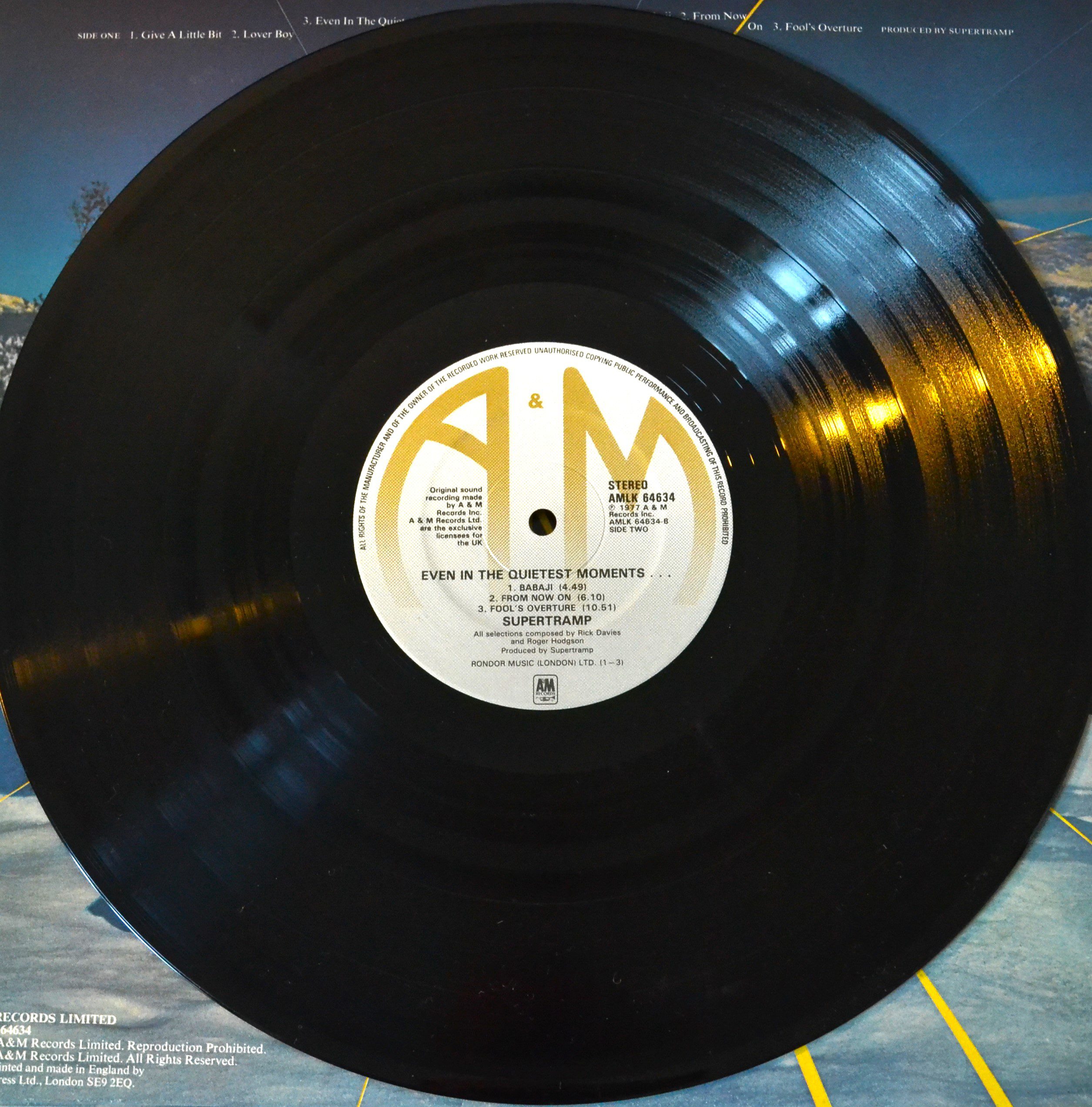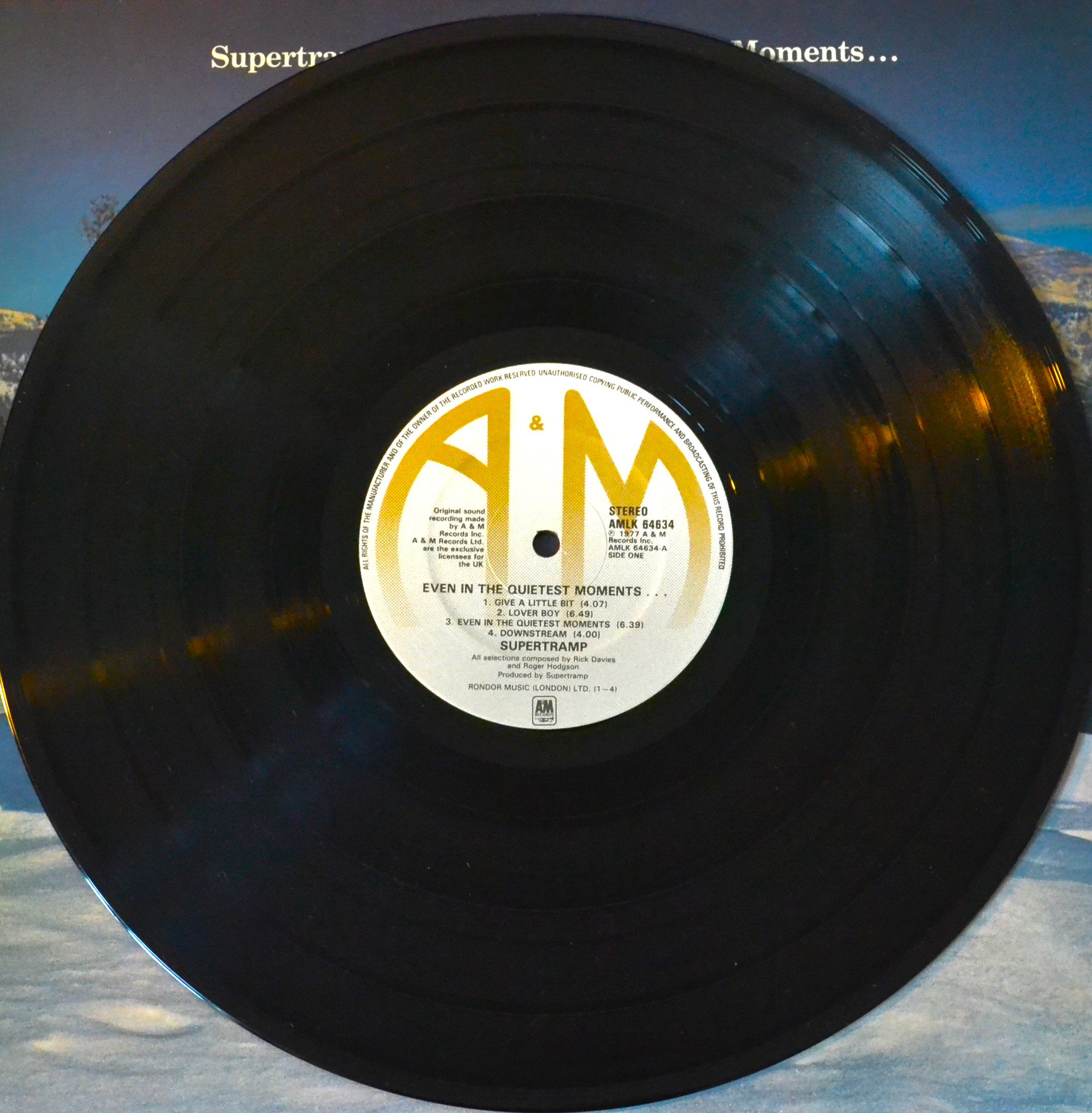 “Even in the Quietest Moments…” is a classic Supertramp vinyl, released under Phonographic Copyright ℗ – A&M Records, Inc., and licensed to A&M Records Ltd. Published by Rondor Music (London) Ltd., it was recorded at both Record Plant, Los Angeles, and Caribou Ranch.
