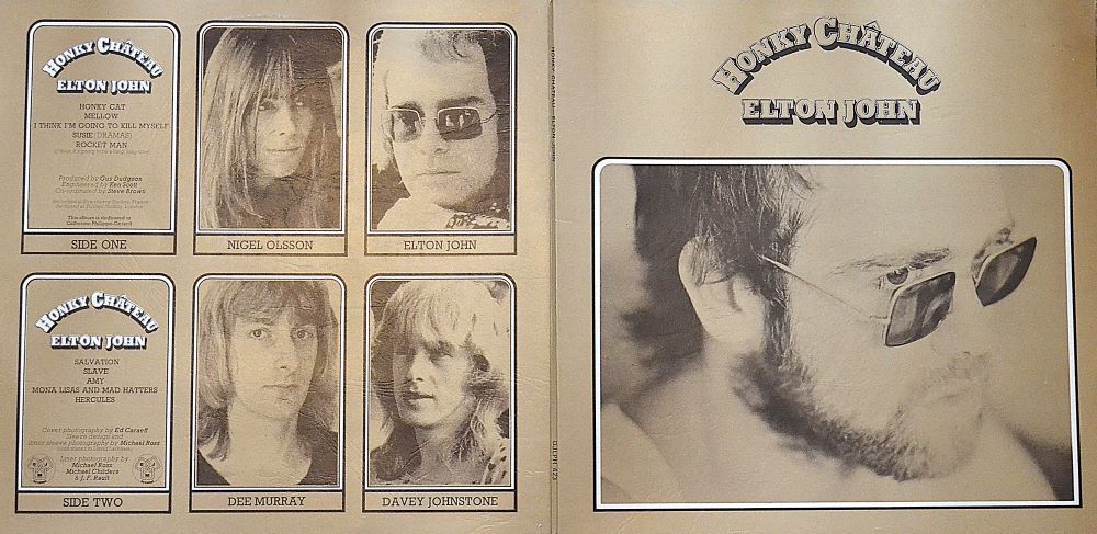 The sleeve’s sepia portrait of Elton in shades is as unfussy as the music inside—earthy, intimate, and a little sun-warmed. The arched “Honky Chateau” title nods to the studio itself, whose rustic rooms and stone walls shaped the album’s sound.