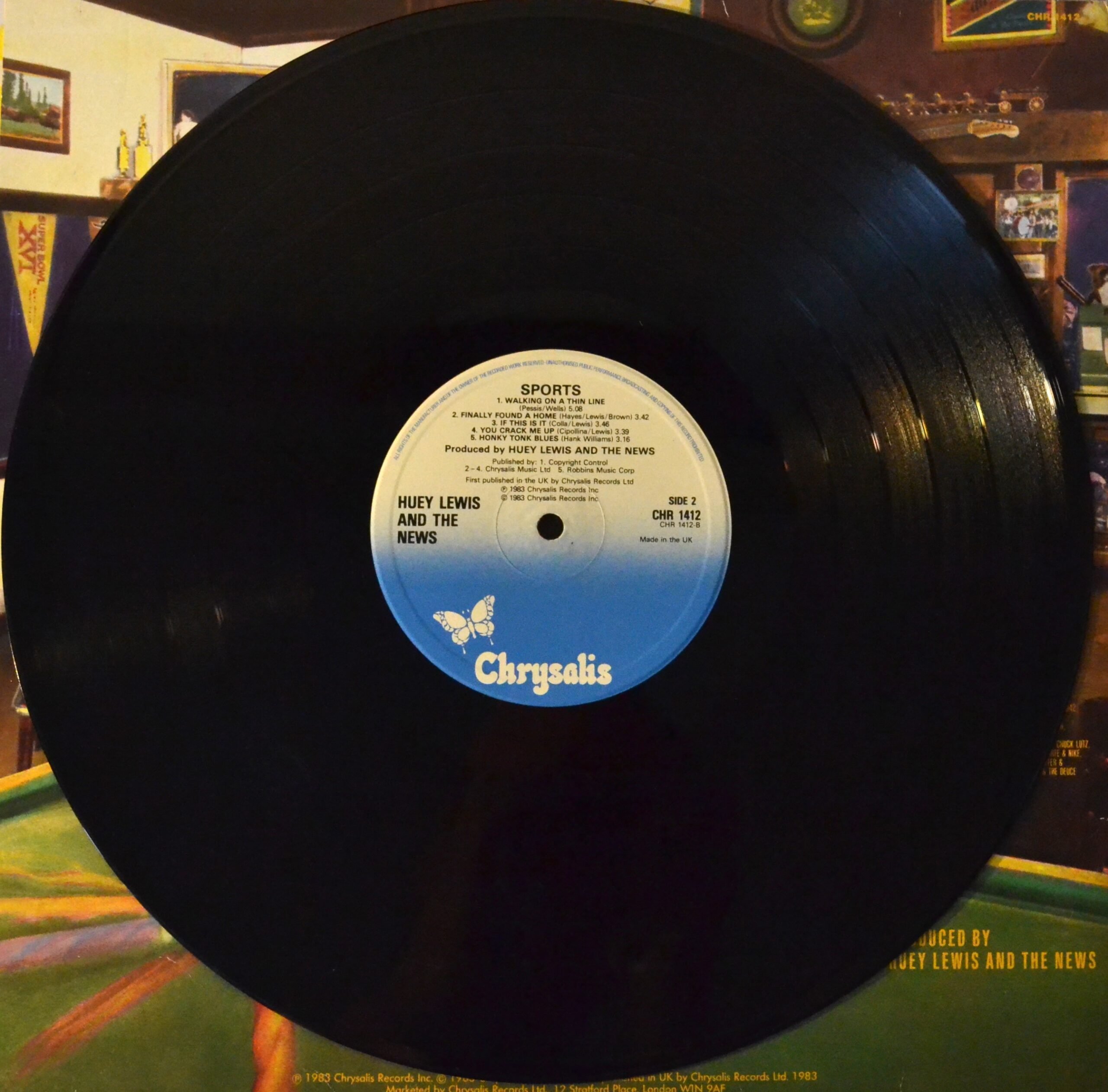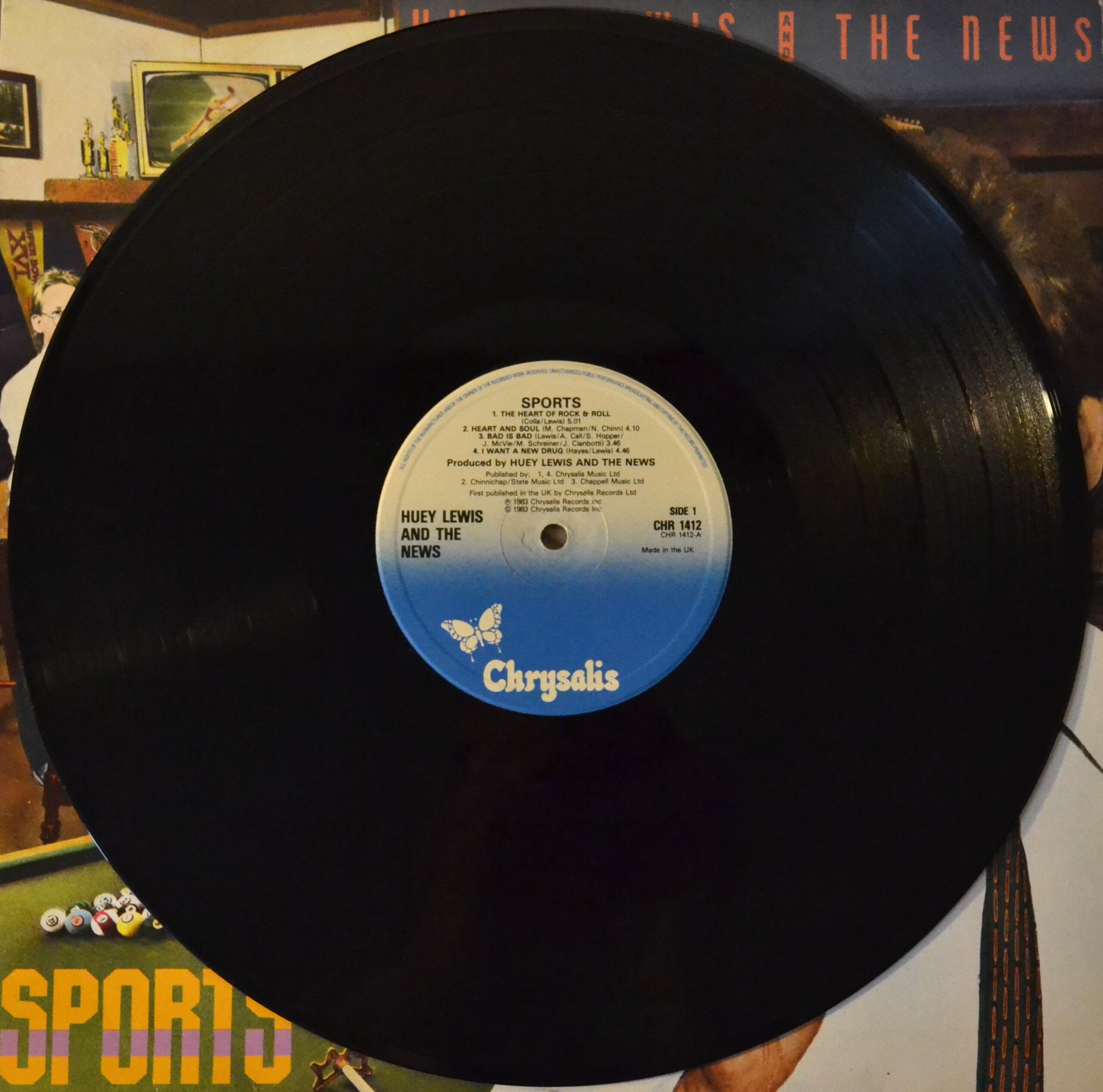 About the Record: Sports is the third studio album by Huey Lewis and The News. The album (this is a stereo one and is produced by Huey Lewis and the news) was a commercial and critical success, garnering three top-ten singles. The album was a departure from their previous work, introducing a more pop-rock sound and a more expansive musical range. The album features a mix of upbeat, energetic songs and slower, more introspective tracks. Standout tracks include “The Heart of Rock & Roll”, “I Want a New Drug”, and “If This Is It”.