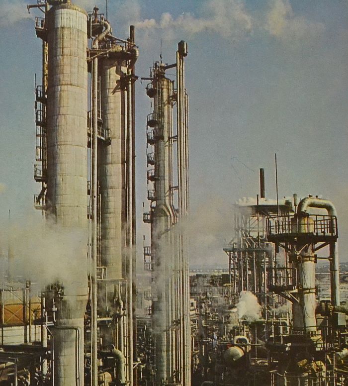 A postcard often preserves details that museums never archived: a factory gate sign, a pipeline network, a control room layout, a lab bench arrangement, the look of a port loading system.