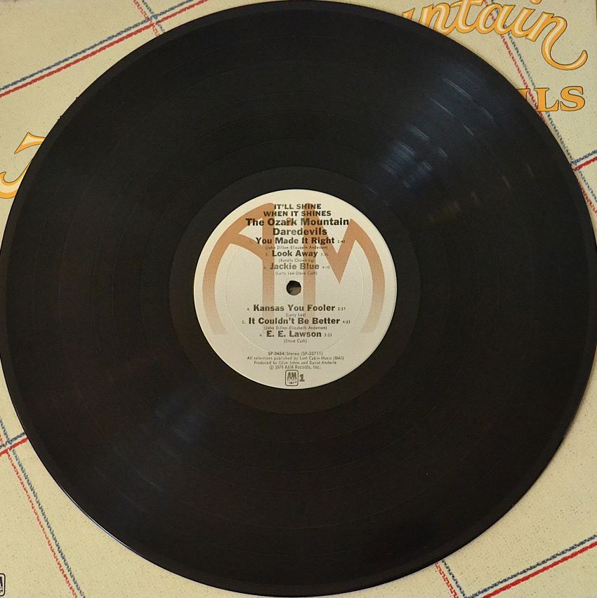 “It’ll Shine When It Shines” (A&M Records, cat. no. SP-3654, 1974) finds The Ozark Mountain Daredevils at their most homespun and hypnotic. This is the band that slipped cosmic country, front-porch bluegrass, and sly pop hooks into the mainstream, and this second LP is where it all clicks. If you know “Jackie Blue,” you know the hit. The real joy is how weird, warm, and wonderfully loose the rest of the record feels on vinyl.
