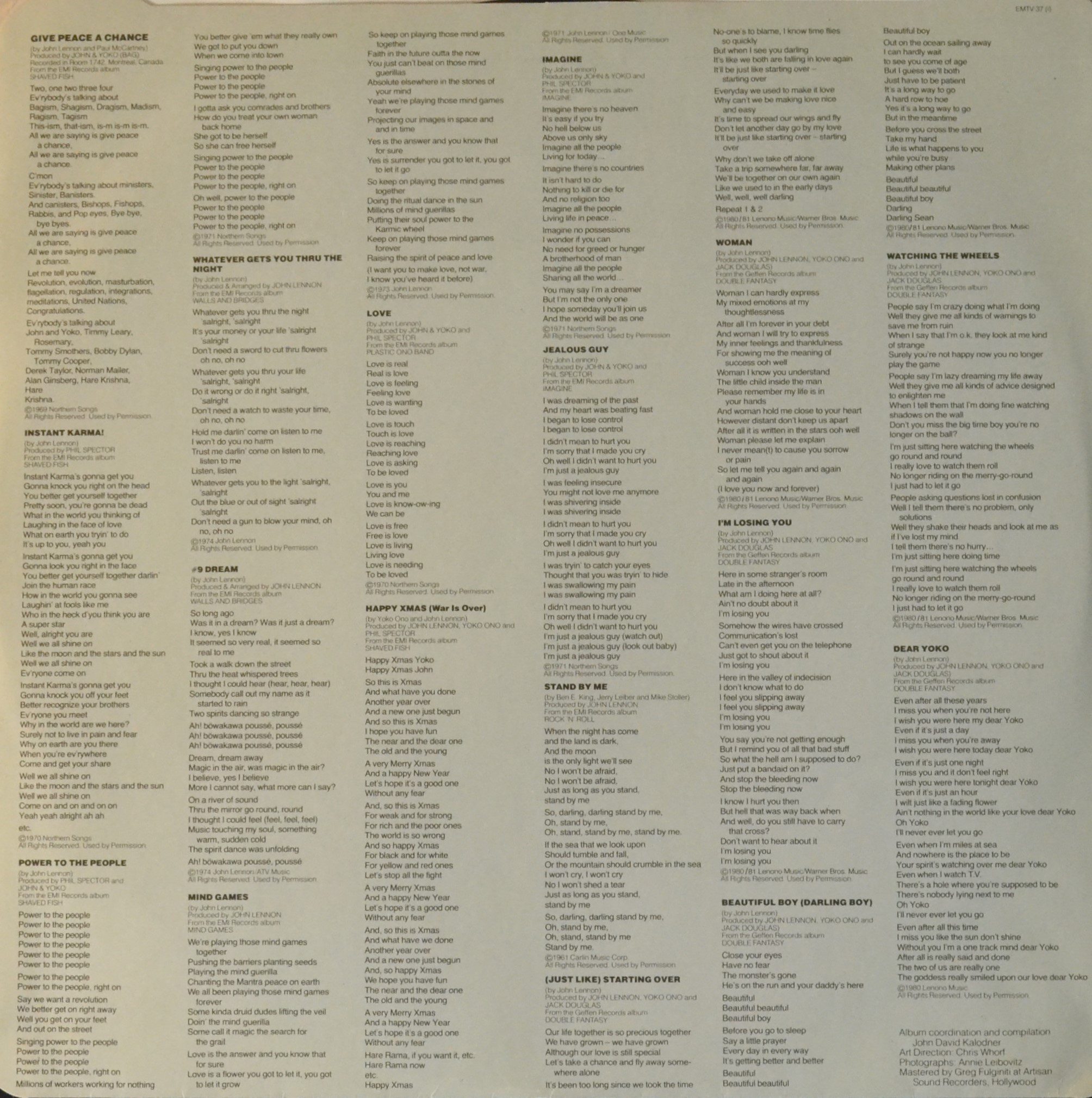 About the tracklist. Give peace a chance