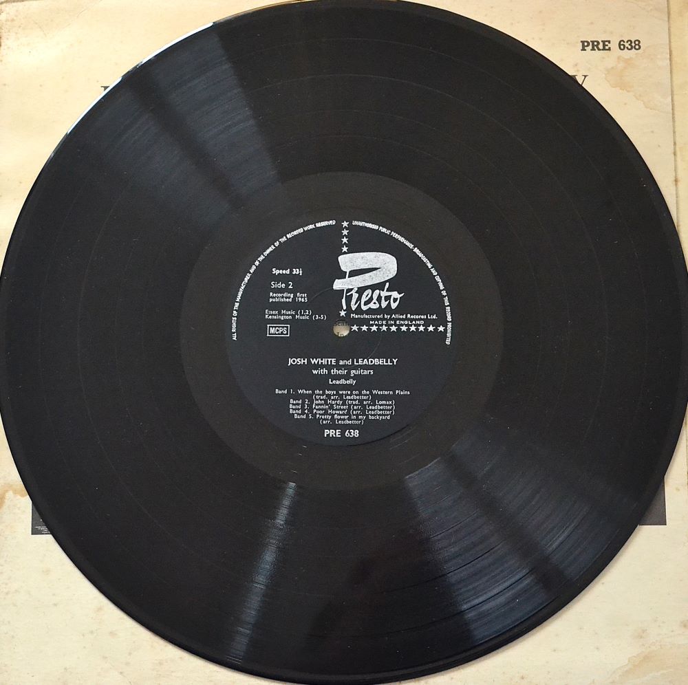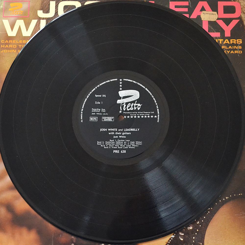 Introducing “Josh White & Leadbelly – With Their Guitars” from 1965, a timeless vinyl record that showcases the incredible talent of two legendary artists. This rare gem, with the catalog number PRE 638, was released in the UK and features a collection of captivating songs that will transport you back to a golden era of music. Immerse yourself in the rich sounds of Josh White and Leadbelly as they strum their guitars and captivate your soul. With tracks licensed by Presto, Allied Records Ltd., Copyright Control, Essex Music, and Kensington Music, this vinyl record is a must-have for any true music enthusiast. Get ready to experience the magic of these iconic musicians as they weave their musical tales through each note and lyric.