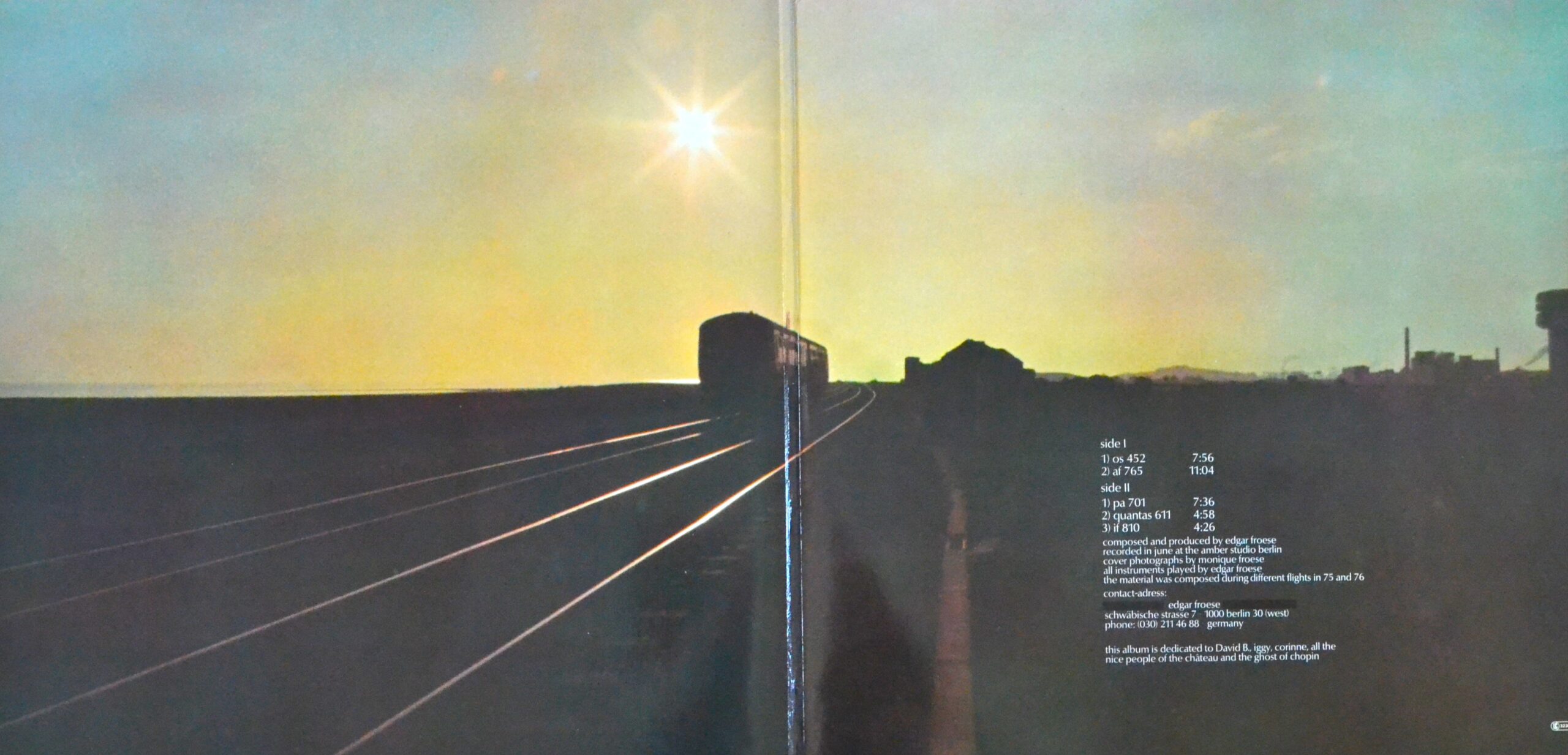 While “Macula Transfer” is primarily instrumental, its music speaks volumes. Each track is a tribute to different aircraft, with atmospheric soundscapes that mimic the sensation of flying. Standout tracks like “OS 452” and “If 810” offer an ethereal mix of sequencer-driven rhythms and lush, ambient textures. Froese’s innovative use of the Mellotron and Moog synths helped craft a sound that was both ahead of its time and immensely influential.