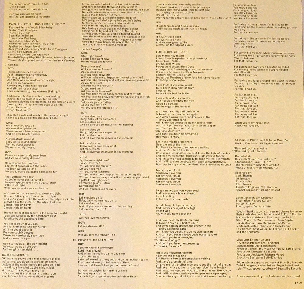 The lyrics and music of “Meat Loaf – Bat Out Of Hell” are larger than life, with epic ballads and hard-hitting rock anthems. Standout tracks include “Paradise By The Dashboard Light,” a duet with Ellen Foley, and “Two Out Of Three Ain’t Bad,” a heartbreaking ballad about lost love. The album’s title track, “Bat Out Of Hell,” is a seven-minute epic that showcases Meat Loaf’s powerful vocals and Jim Steinman’s masterful songwriting.