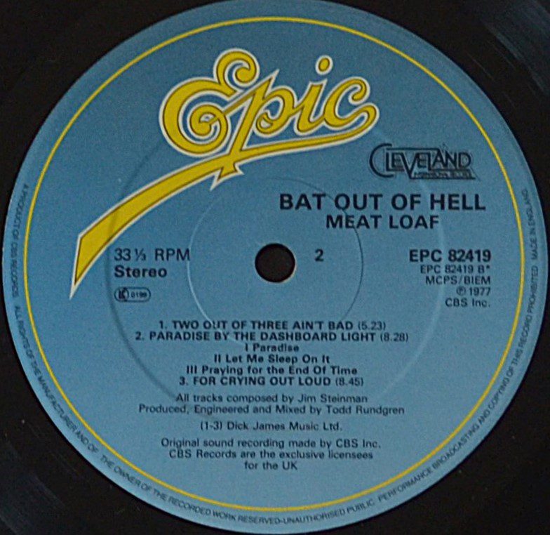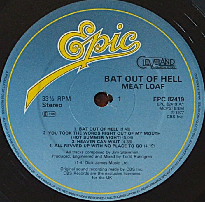 Get ready to rock with Meat Loaf’s iconic album “Bat Out of Hell” from 1977. This pop-rock masterpiece features hits like “Paradise by the Dashboard Light” and “Two Out of Three Ain’t Bad”. With the EPC 82419 label, this UK release is a must-have for any vinyl collector. Produced by Epic, Cleveland International Records, Dick James Music Ltd., CBS Inc., CBS Records, Bearsville Studios, Utopia Sound, The Hit Factory, and House Of Music in West Orange, NJ, this album is a true collaboration of musical talent. Don’t miss out on adding “Meat Loaf – Bat Out Of Hell” to your collection.
