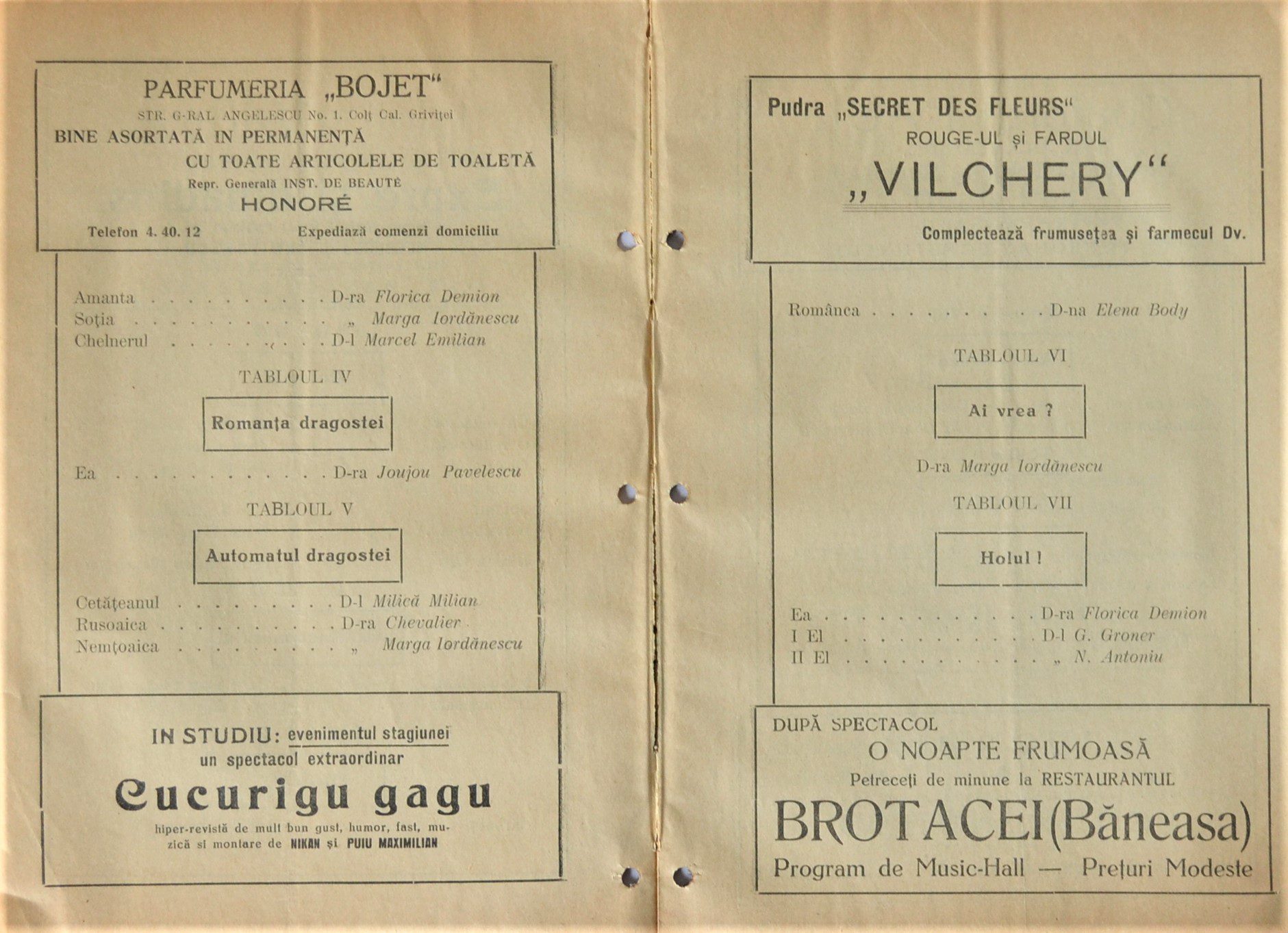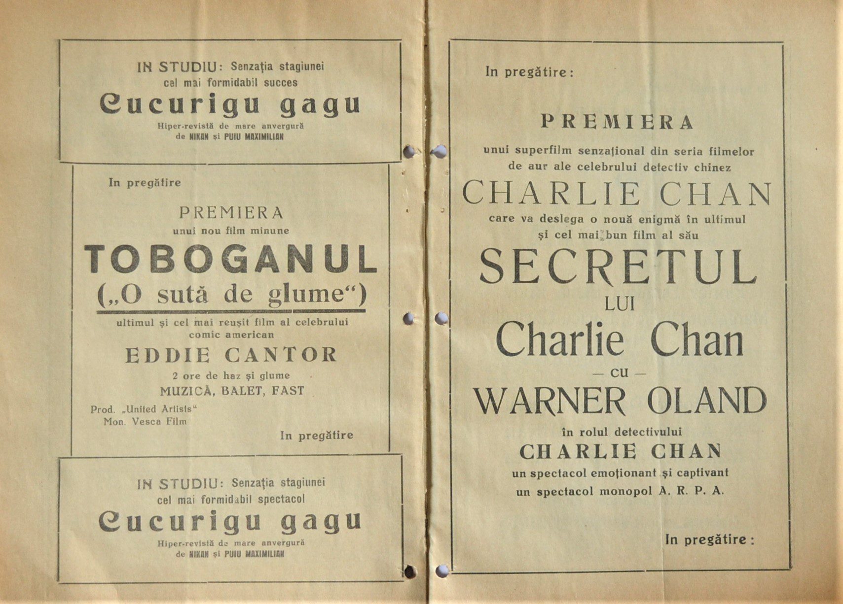 The preserved program is a valuable keepsake for collectors and enthusiasts of cinema and vaudeville history, offering a tangible connection to the golden age of film in Romania.