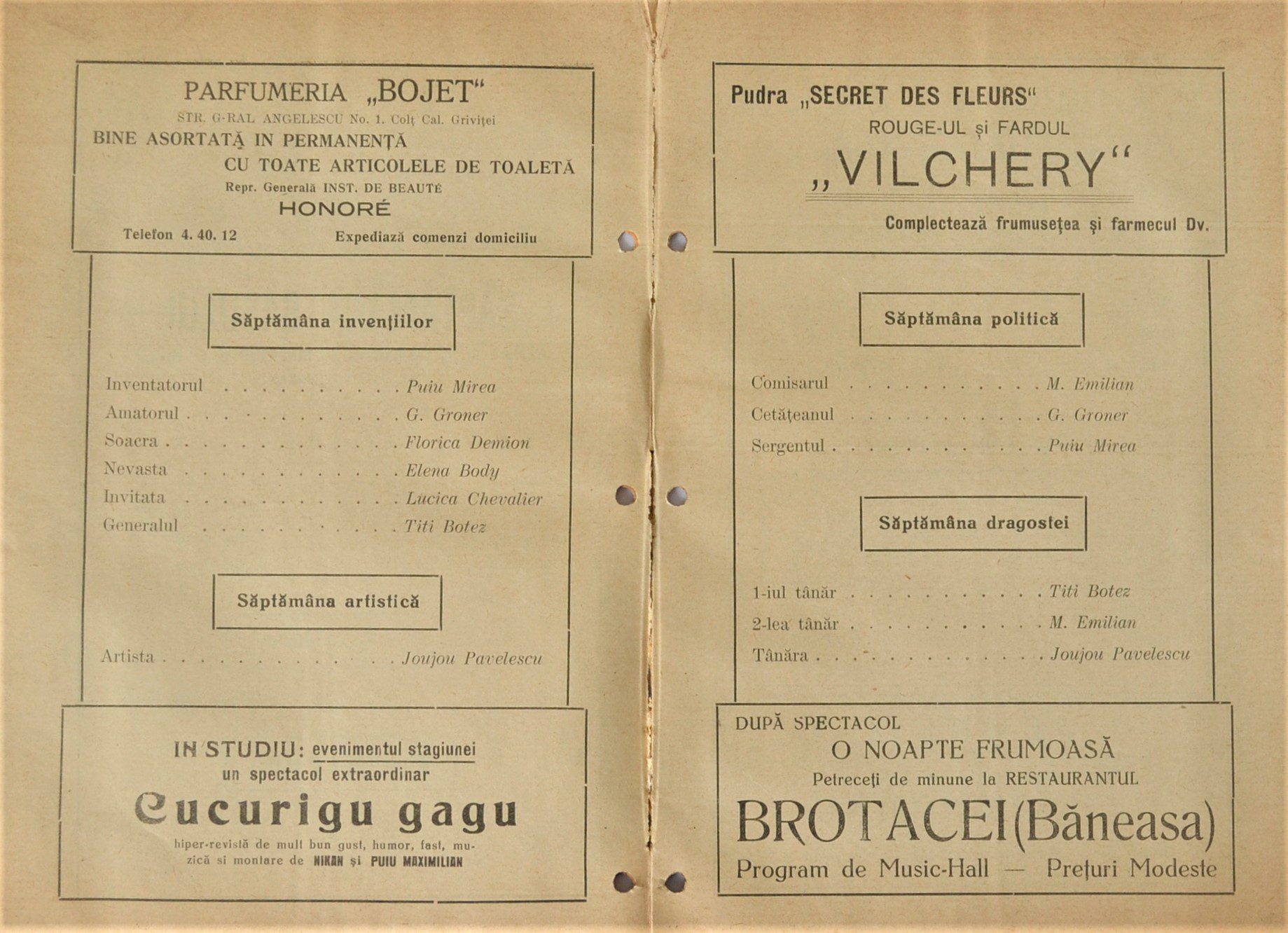 This chapter provides a detailed examination of the acts that were featured in the 1936 Vaudeville program at Arpa Cinema Theatre. From Lucica Chevalier to Elena Body, this explores the unique talents of these performers and their impact on vaudeville.
