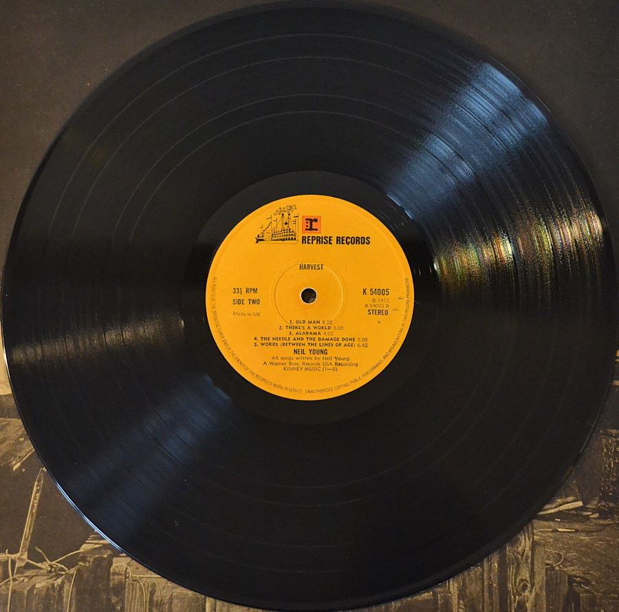 Harvest is an album of folk rock and country rock songs, focusing on acoustic guitars and melodic vocals. The album features the hit single “Heart of Gold”, as well as other popular tracks such as “Old Man” and “A Man Needs a Maid”. The album reflects Young’s struggles at the time, and it has been praised for its honest and heartfelt lyrics. This is a FIRST PRESS UK RARE album.