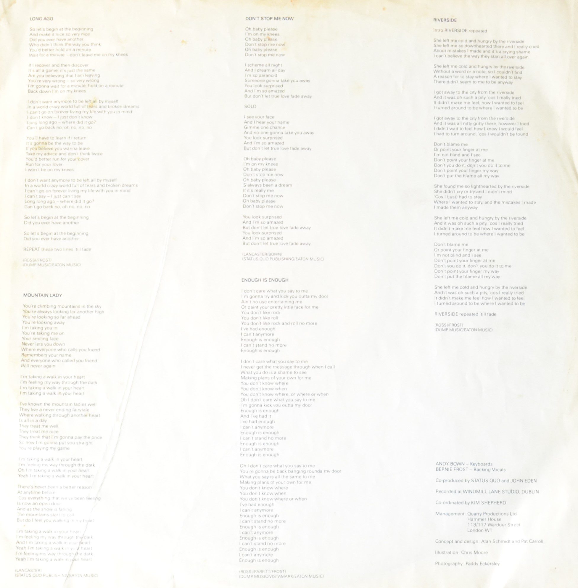 The artist behind “Never Too Late” Status Quo has a unique ability to connect with listeners through heartfelt lyrics and compelling melodies. Their career has been marked by an unwavering commitment to authenticity and artistry, making each track a personal yet universally relatable experience.