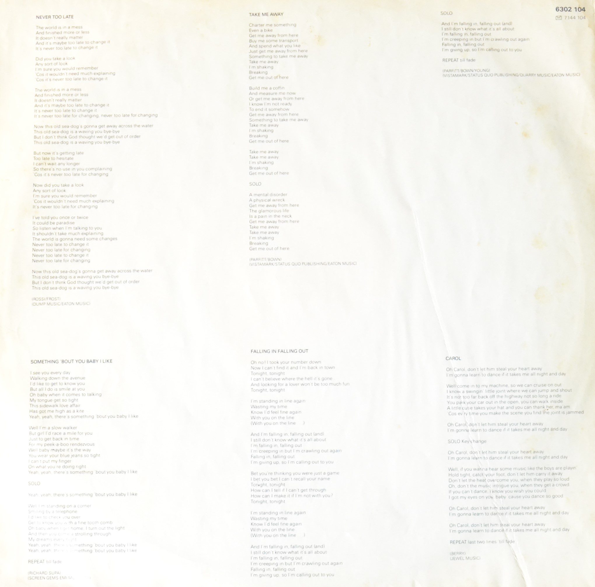 “Never Too Late,” is a captivating piece recorded at Windmill Lane Studios and expertly lacquer cut at Rosenborg Studio. It embodies Phonogram’s rich legacy, marketed by Phonogram Ltd., pressed by Musikkindustri A/S, and printed by Team-Trykk A.S..