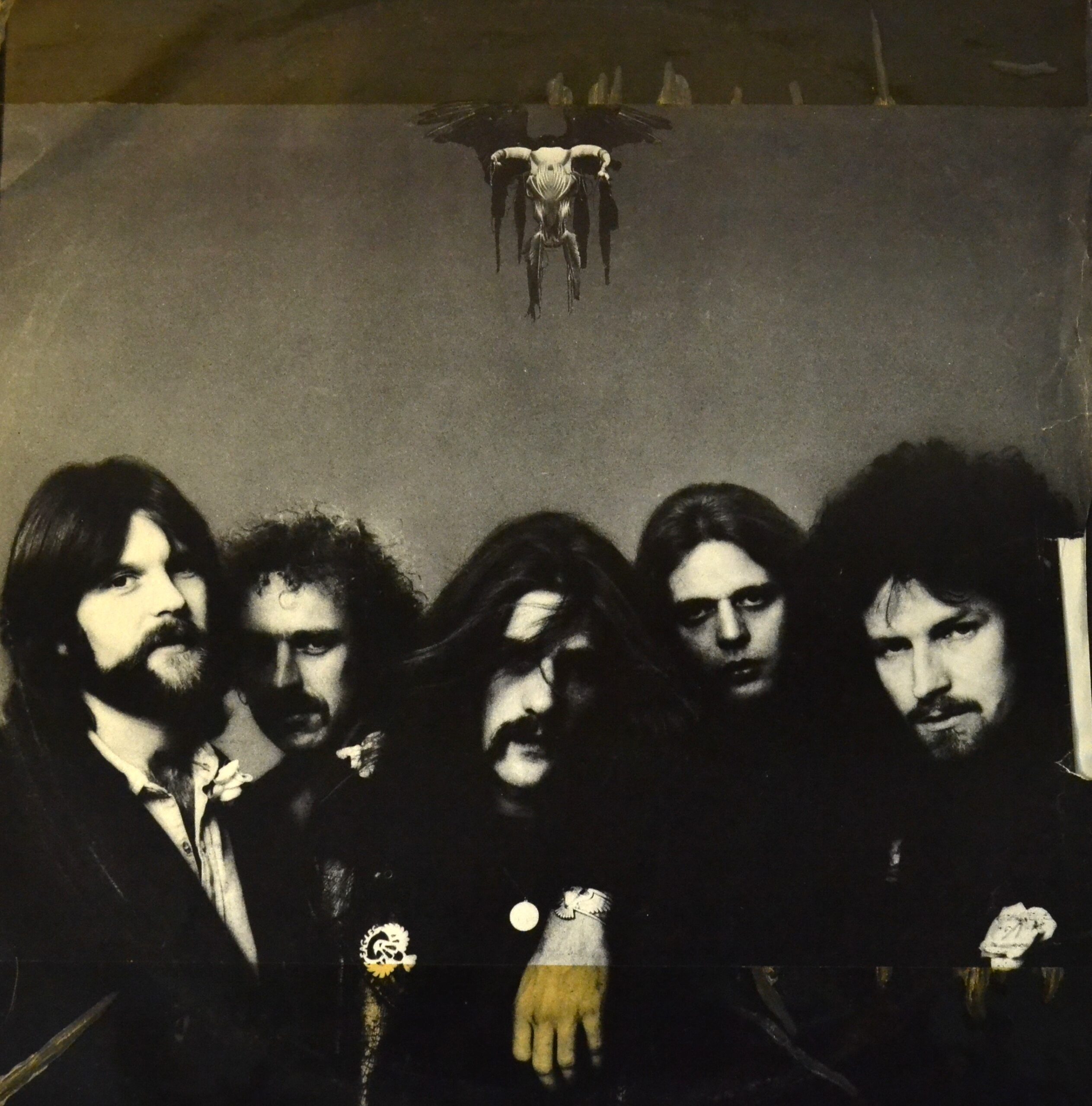The striking cover art was created by Boyd Elder, who specialized in mystical, Southwestern-inspired designs (fun fact: he also had a hand in later Eagles sleeves). The image features a haunting, beaded skull on a black, star-speckled background. It’s both eerie and beautiful—a visual symbol of the myths, dreams, and uneasy glamour the music conjures. The record has the original inner sleeve.
