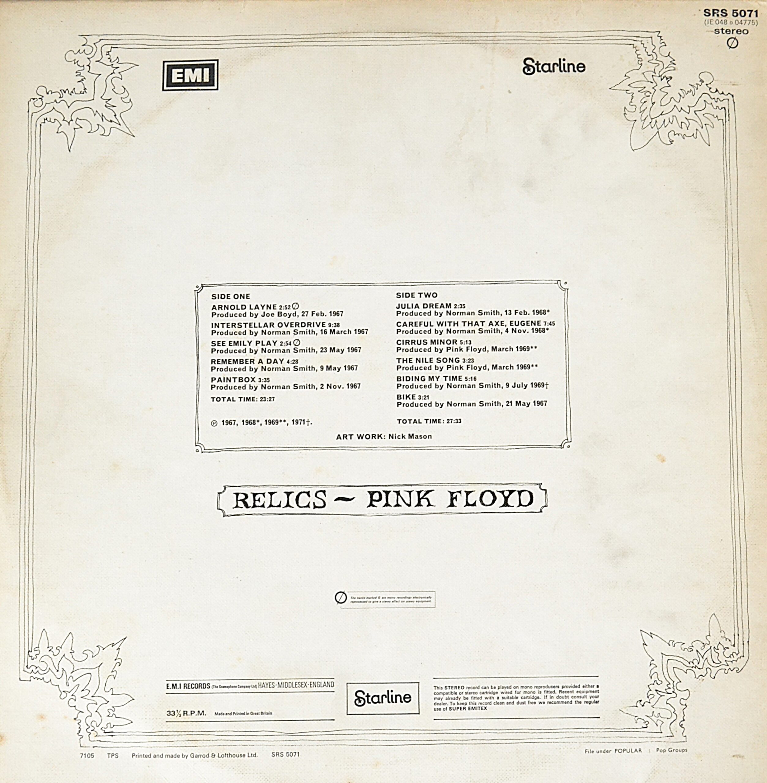 Pink Floyd are the high priests of psychedelic rock, best known for their multimedia concerts, philosophical lyrics, and genre-pushing albums. Formed in London in 1965, the band’s roots sleep soundly in the avant-garde. Founding members Syd Barrett, Roger Waters, Richard Wright, and Nick Mason were a collision of creative minds, swiftly joined by David Gilmour in 1968. By the time “Relics” hit record shop shelves, the Floyd lineup had weathered the creative departure of Syd Barrett but kept his spirit alive in their music. Their fascination with science fiction, surrealism, and counterculture set them apart, drawing influence from American blues, British whimsy, and a fair bit of experimental improvisation.
