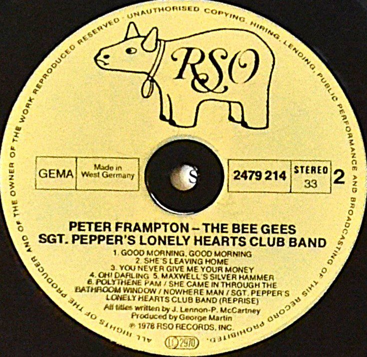 This 1978 pressing of “Sgt. Pepper’s Lonely Hearts Club Band” (RSO 2658 128) is a brilliant curiosity: