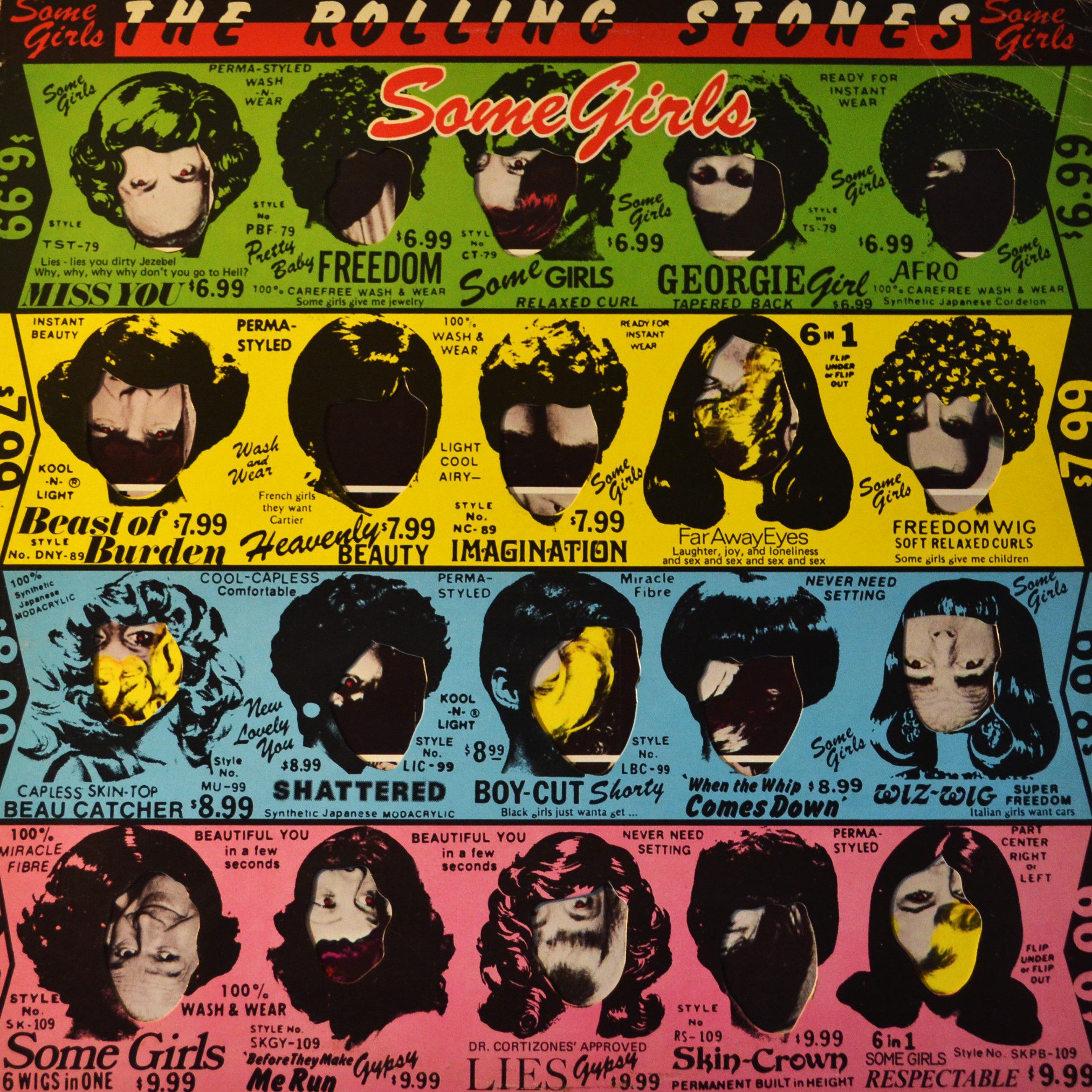 The album cover of “Some Girls” is as iconic as the tracks it encases. Initially released with a die-cut design featuring the band members’ faces alongside those of celebrities, it stirred controversy and legal challenges, leading to a revised version. The artwork’s playful yet edgy style perfectly encapsulates the record’s essence, making it a standout piece of visual art in rock history.