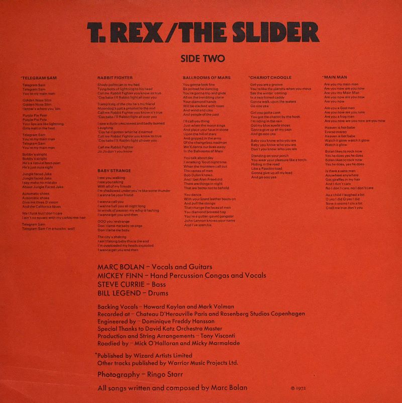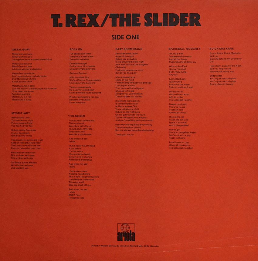 About the Cover: The Slider cover shows Mark Bolan’s portrait with his distinctive leather hat, which has embossed scenes from Alice in Wonderland on it. The artwork is a perfect representation of the album’s sound and themes and is one of the most recognizable album covers of all time.