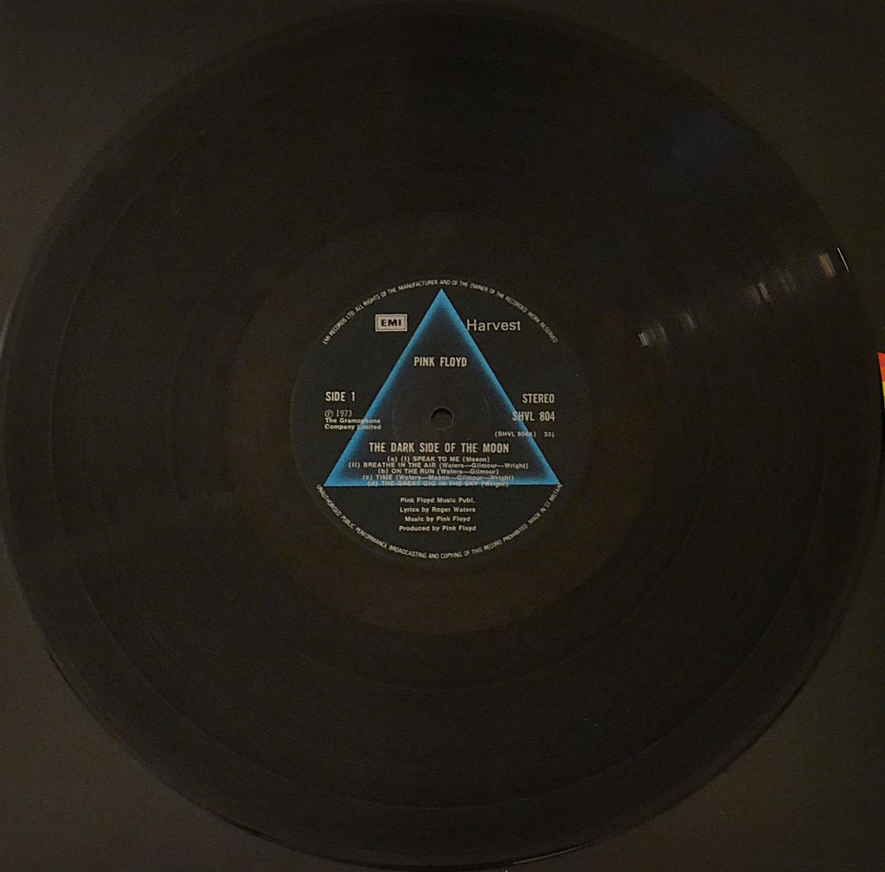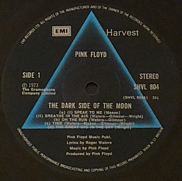 Explore Pink Floyd’s The Dark Side of the Moon vinyl. Original UK EMI Records Ltd. release, ℗ The Gramophone Co. Ltd.; recorded at Abbey Road Studios; printed/made by Garrod & Lofthouse Ltd.; published by Pink Floyd Music Publishers Ltd.; pressed by EMI Records.