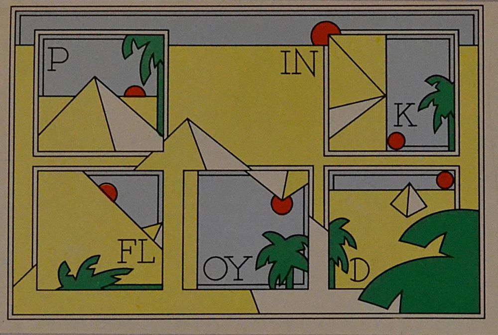 Original UK issues often included two posters (band and pyramids) and two stickers—completeness boosts collectability.