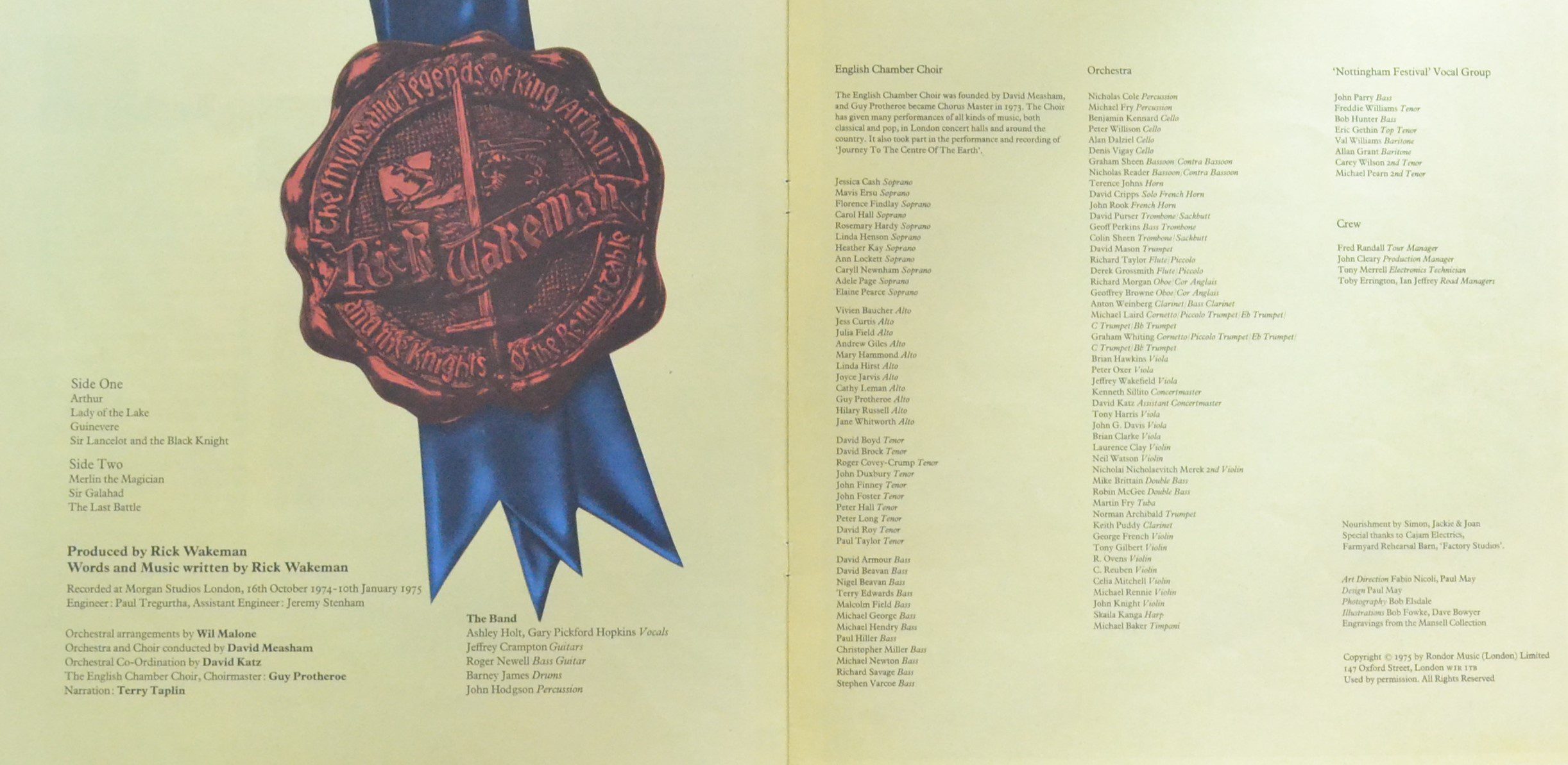 Explore the myths and legends of King Arthur and the Knights of the Round Table through this unique release, published by Rondor Music (London) Ltd., phonographic copyright ℗ by A&M Records, Inc., pressed by CBS Pressing Plant, Aston Clinton, and printed by MacNeill Press Ltd.