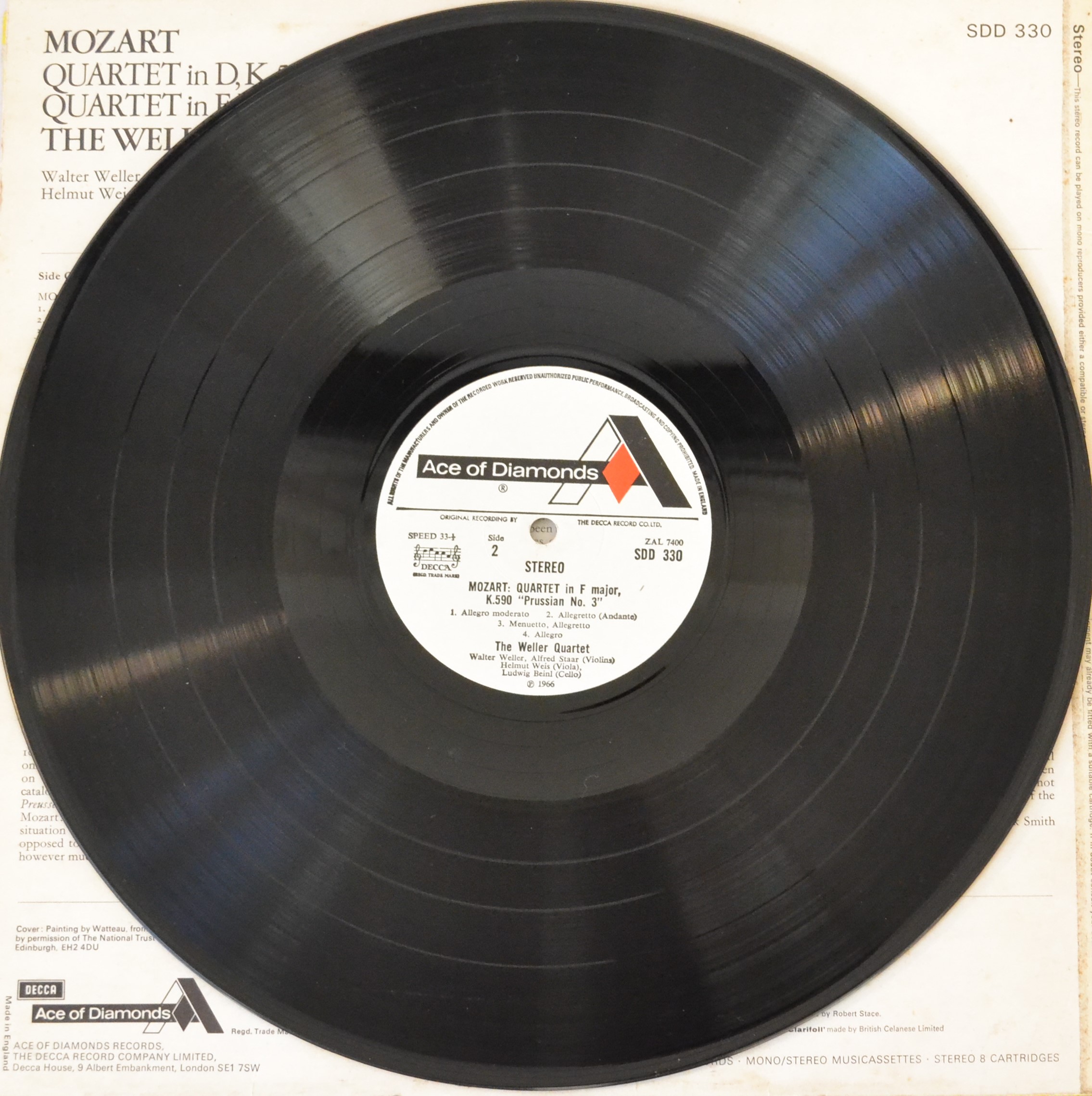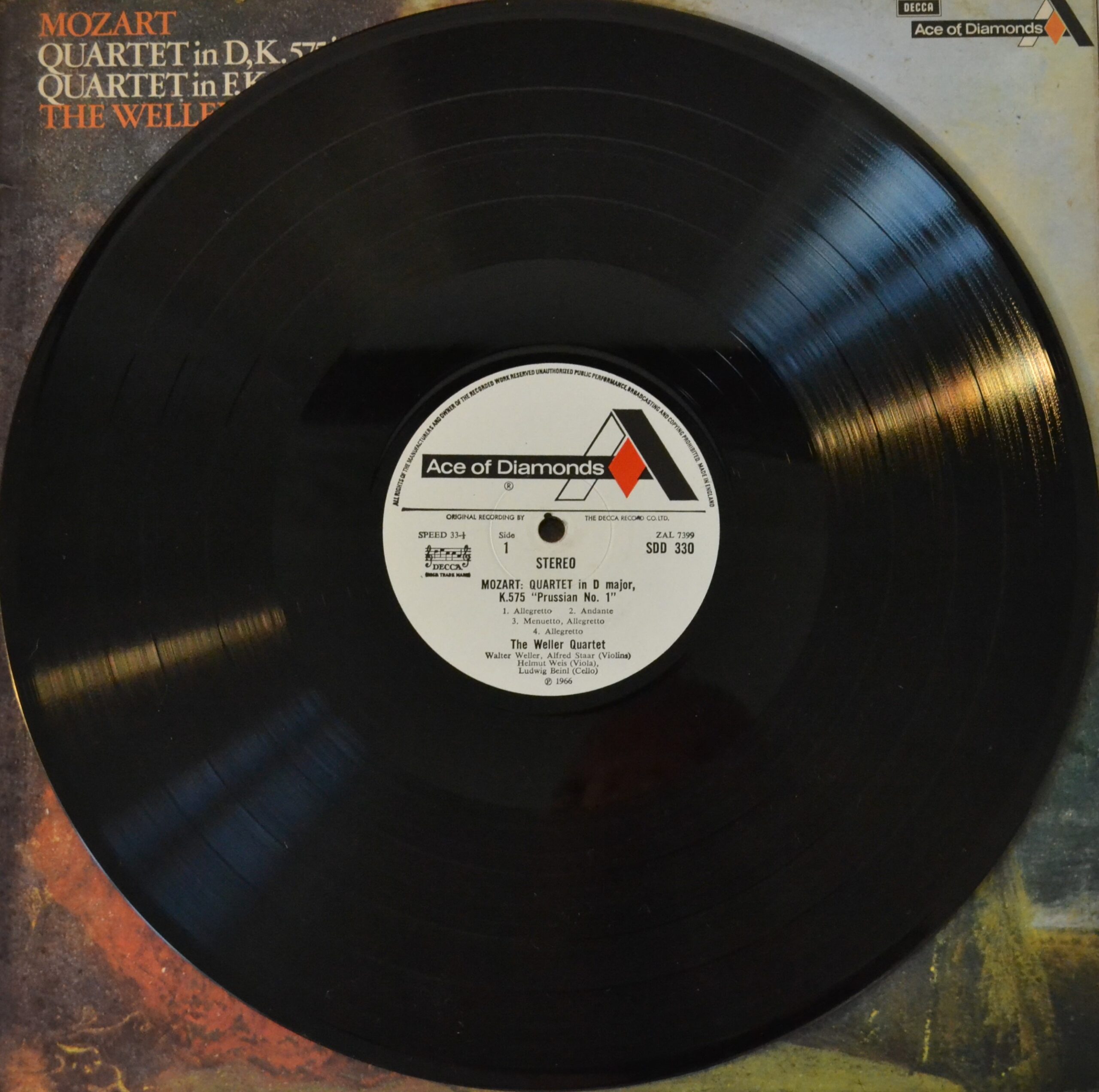 Experience the timeless beauty of Mozart’s classic works with the 1972 release of Quartet In D, K.575 ‘Prussian No.1’ / Quartet In F, K.590 ‘Prussian No. 3’ from The Weller Quartet. This iconic classical release from the UK’s Ace Of Diamonds label is recorded on the SDD 330 vinyl and is a must-have for any classical music enthusiast. This record is a perfect addition to any vinyl collection, allowing you to listen to Mozart’s masterpieces as they were meant to be heard.