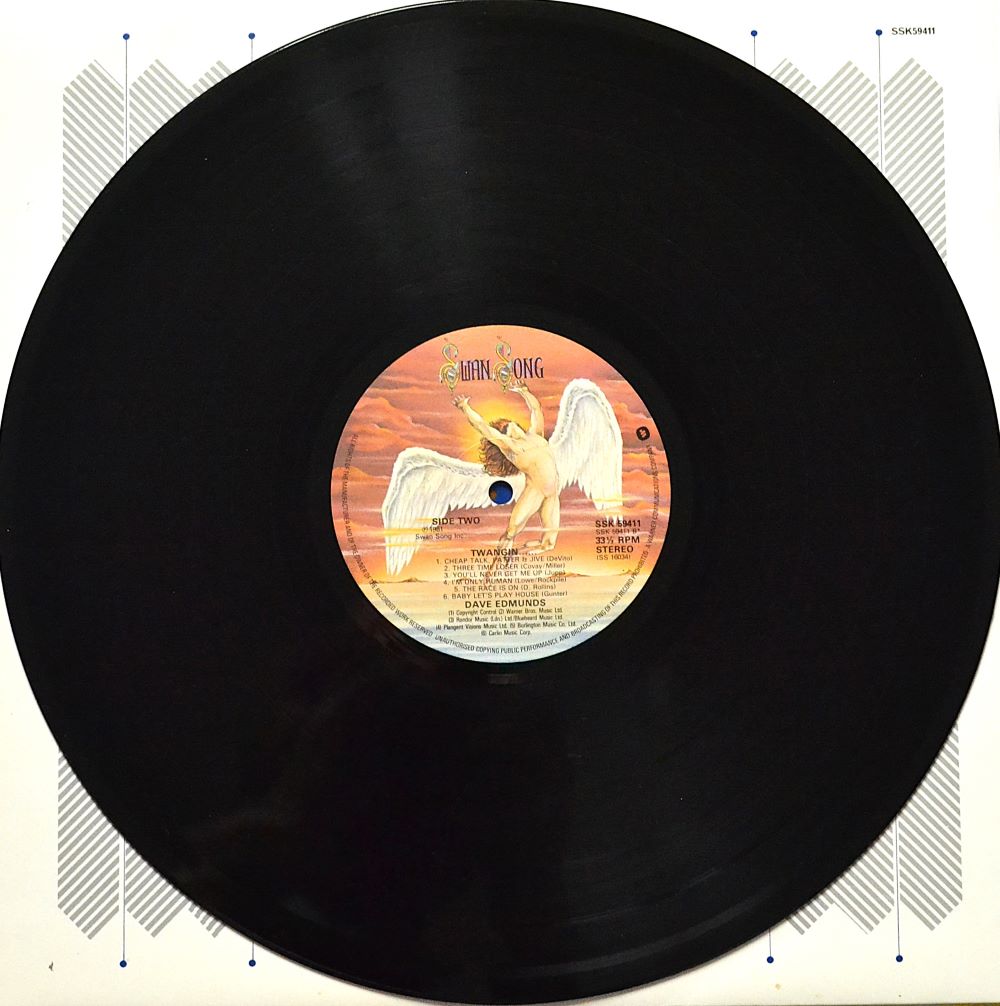 Released by Swan Song Inc. through Warner Communications, this rock album showcases producer, guitarist, and vocalist Dave Edmunds with Billy Bremner, Nicky Lowe, and Terry Williams. Engineered by Aldo Bocca and lacquer cut by Porky, it delivers crisp, rootsy power, with songs published by Warner Bros. and Albion Music Ltd.