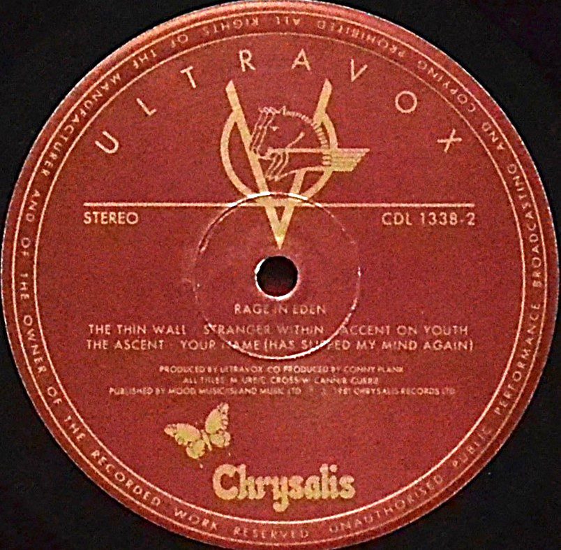 GET READY TO EXPERIENCE THE CLASSIC NEW WAVE SOUND OF ULTRAVOX WITH THEIR 1981 ALBUM RAGE IN EDEN. THIS CLASSIC ALBUM FROM THE BRITISH BAND IS SURE TO BE A HIT WITH FANS OF THE GENRE. WITH WORLDWIDE DISTRIBUTION THROUGH CHRYSALIS RECORDS LTD., PUBLISHED AT MOOD MUSIC AND ISLAND MUSIC LTD., RECORDED AND MIXED AT CONNY’S STUDIO, LACQUER CUT AT THE TOWN HOUSE, AND PRESSED BY PRS LTD., CDLL1338 CAPTURES THE SOUND OF THE 80S AND IS SURE TO BE A COLLECTOR’S ITEM. EXPERIENCE THE NEW WAVE SOUND OF ULTRAVOX WITH THEIR 1982 ALBUM RAGE IN EDEN.