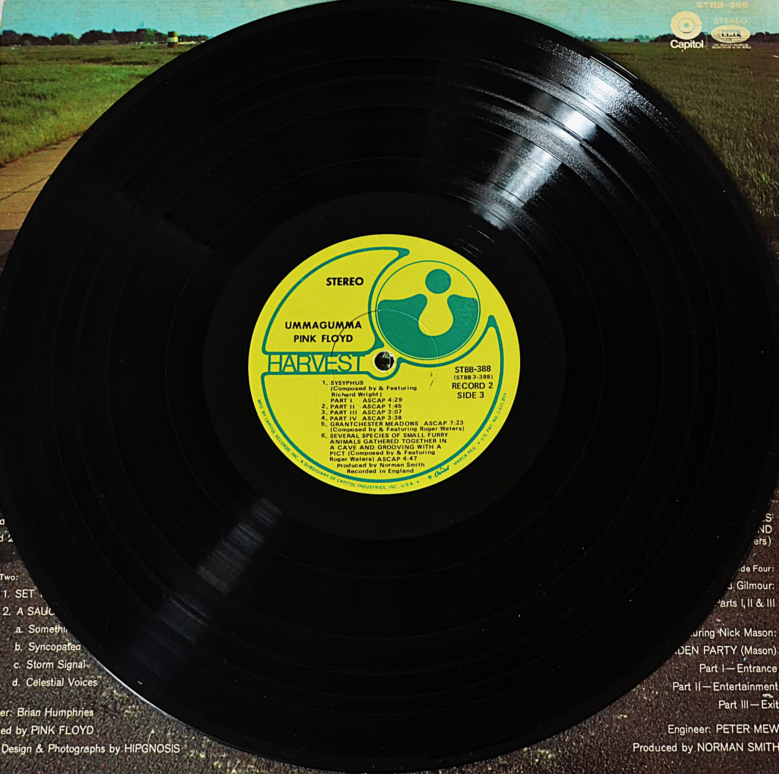 Take a mind-bending trip with Pink Floyd’s Ummagumma—a double vinyl adventure released in 1970 on Harvest and Capitol Records (Catalog STBB-388). Half live, half studio, and fully unpredictable, this album marked a pivotal moment in the Floyd’s journey. Nestled between 1969’s More and the world-famous Dark Side of the Moon, Ummagumma is an experimental playground that showcases both the band’s collaborative energy and individual creativity. Buckle up—because this record isn’t just music; it’s an experience.