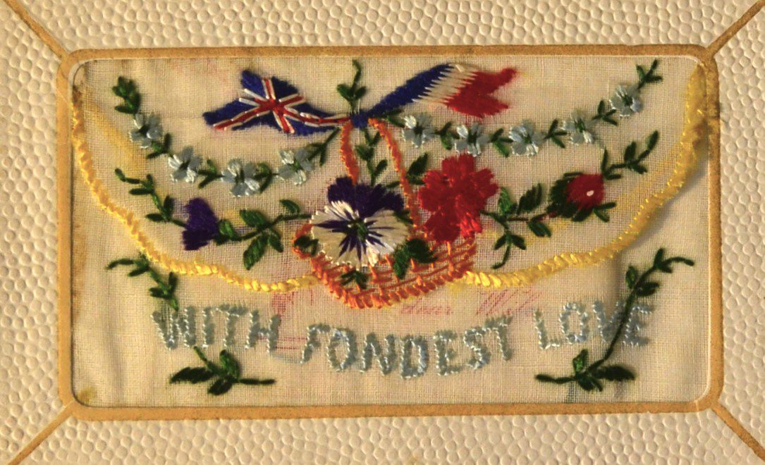 Originating from France, each of these postcards was painstakingly embroidered by French and Belgian women. A practice that not only provided them with an income during the harsh war years but also demonstrated a graceful act of resistance against the war’s desolation.
