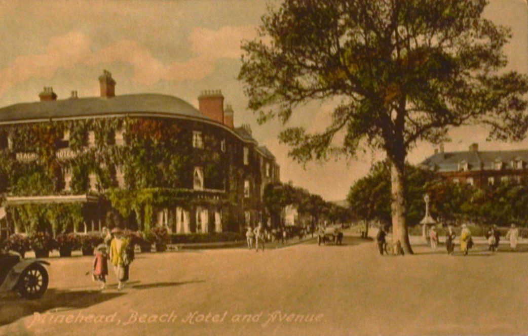 Explore vintage postcards of Minehead featuring: “The Beach and North Hill,” which showcases the serene coastal charm, and “Beach Hotel and Avenue,” capturing the elegance of historic hospitality and scenic landscapes. Each postcard offers a nostalgic glimpse into Minehead’s picturesque past.