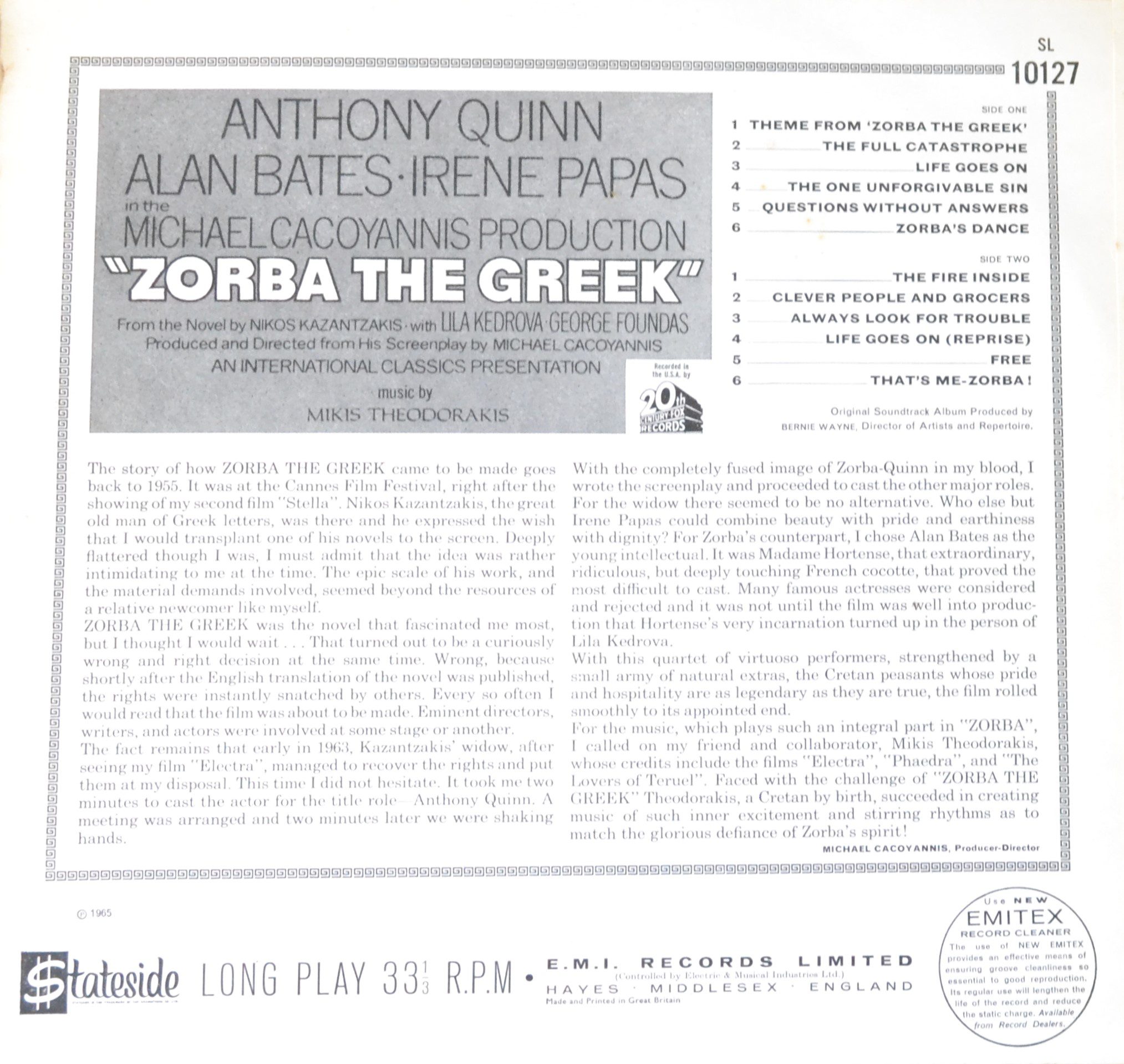 The album cover features an evocative image, mirroring the film’s raw energy and cultural richness. Its design is a visual nod to the story’s Greek heritage, drawing listeners into the world of Zorba before even hearing the first note.